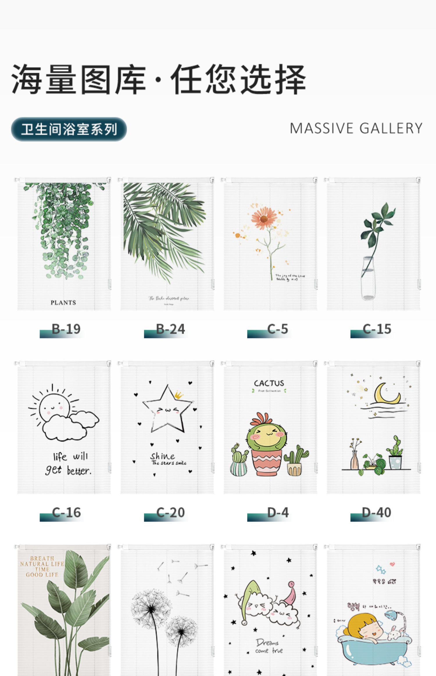 V45O 펀치 프리 화장실 블라인드 커튼 화장실 화장실 리프팅 정전 창