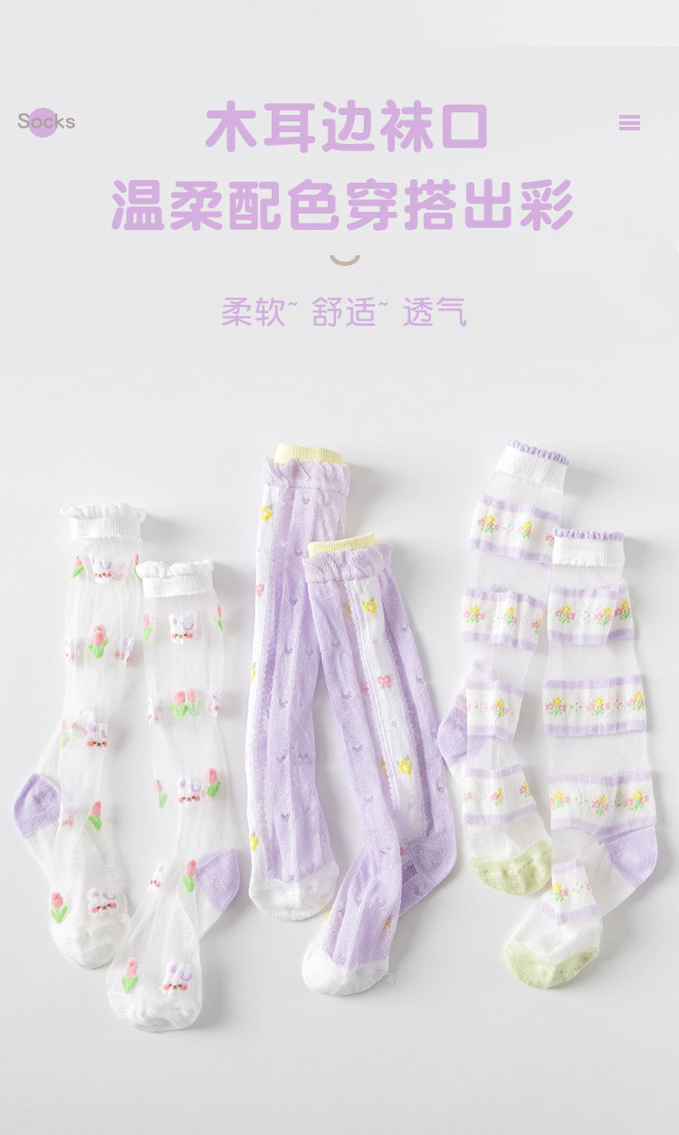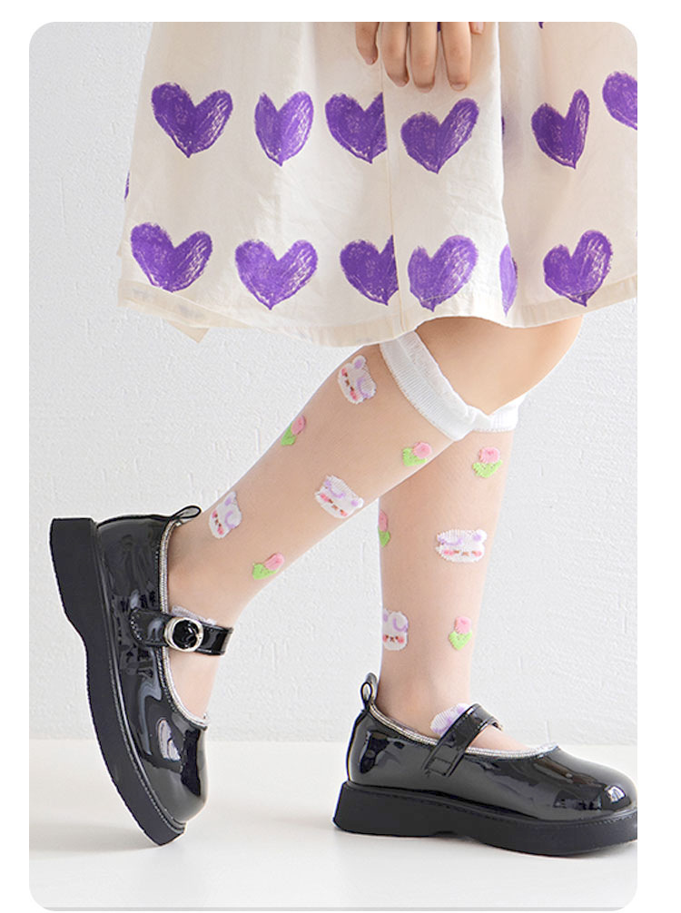 여름 소녀 송아지 양말 통기성 유리 실크 얇은 어린이 양말 달콤한 토끼 아기 소녀 스타킹 도매스토어 가기
