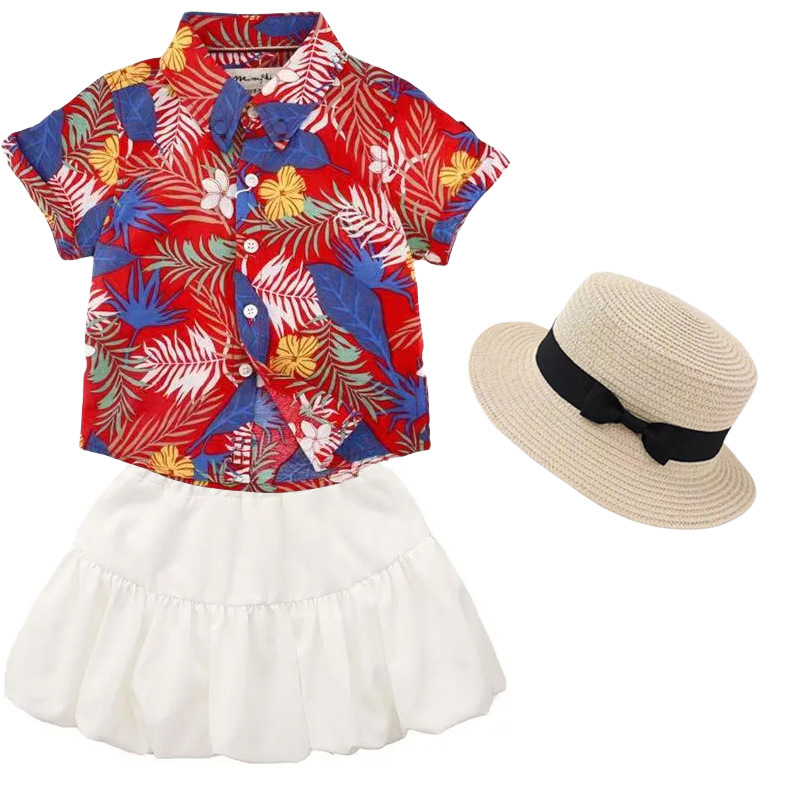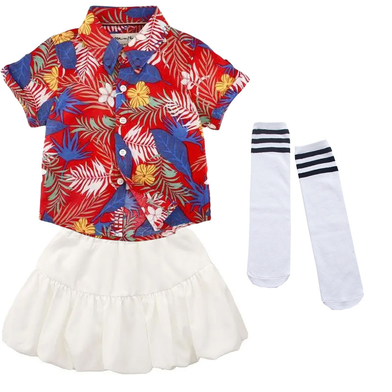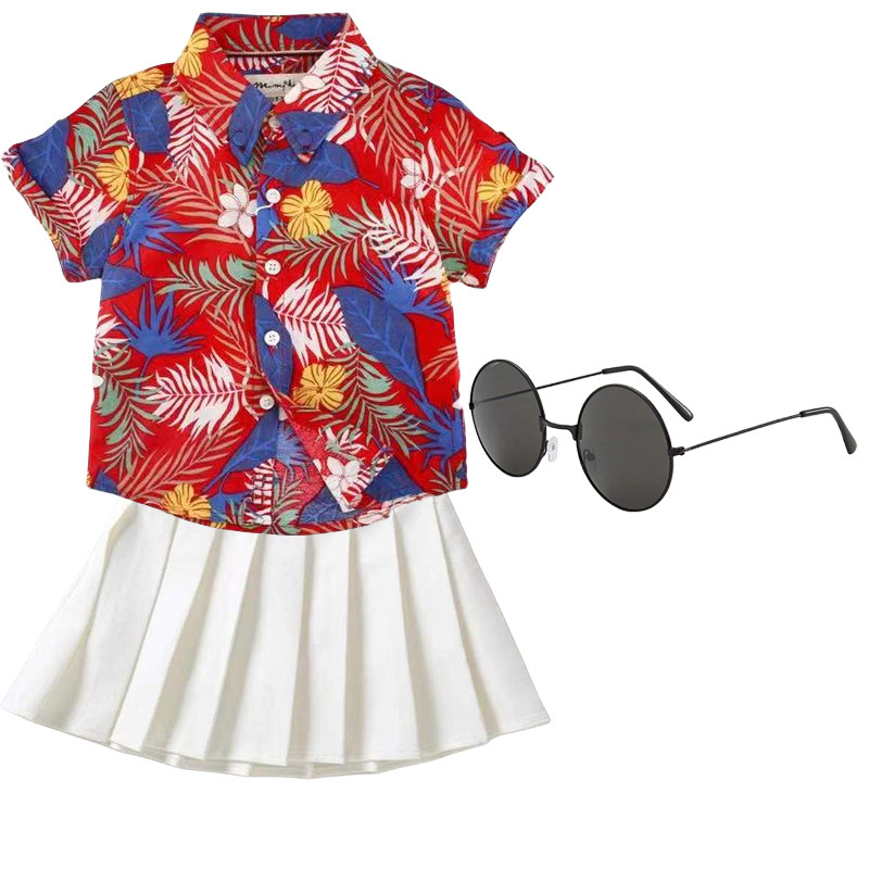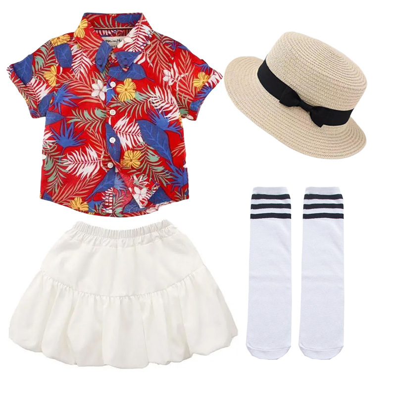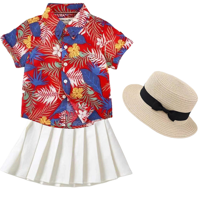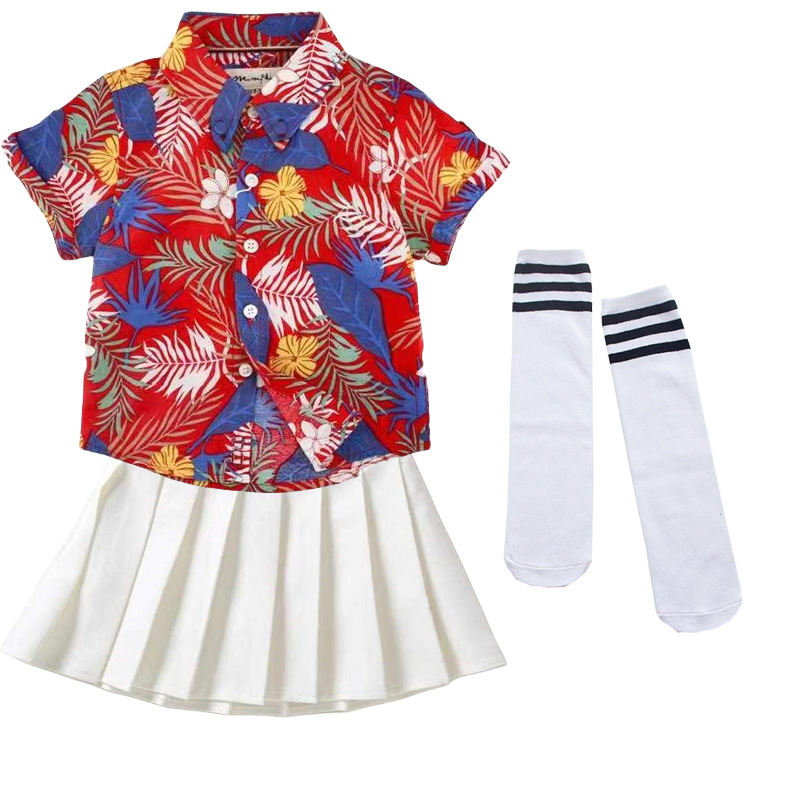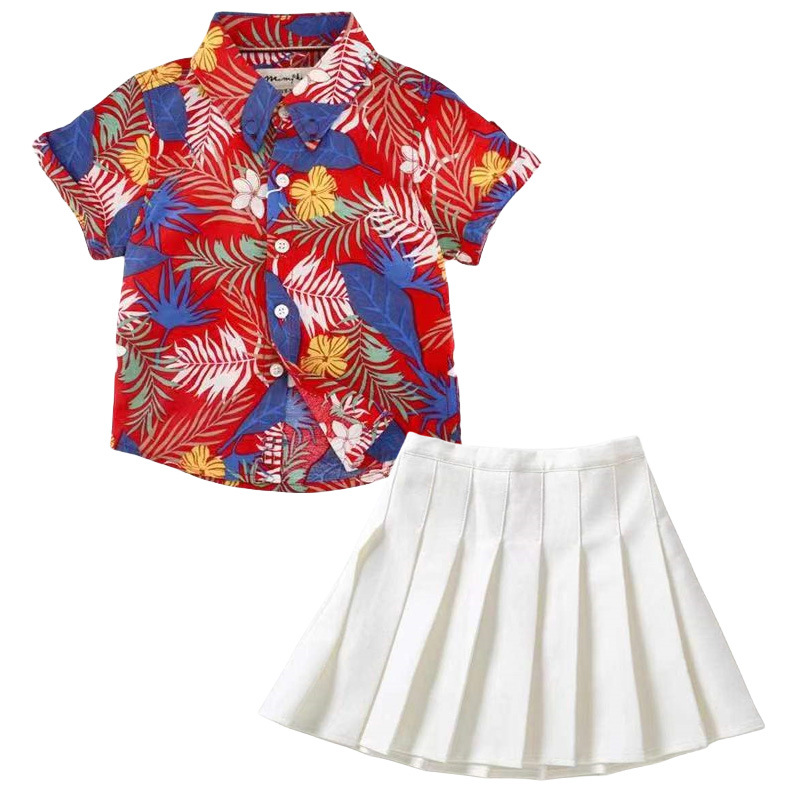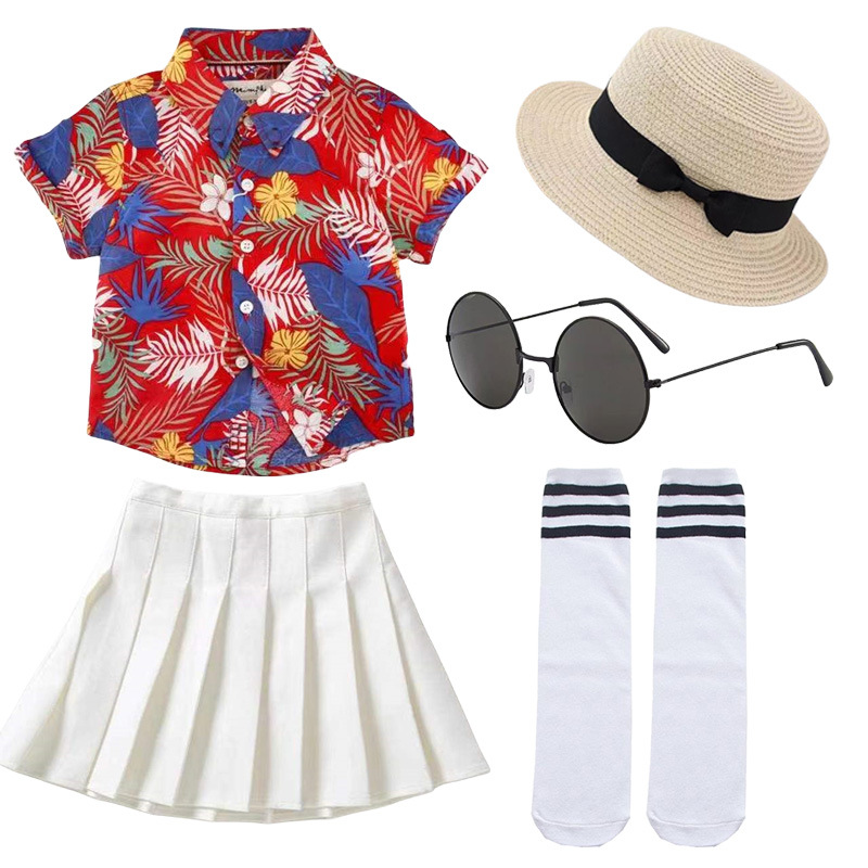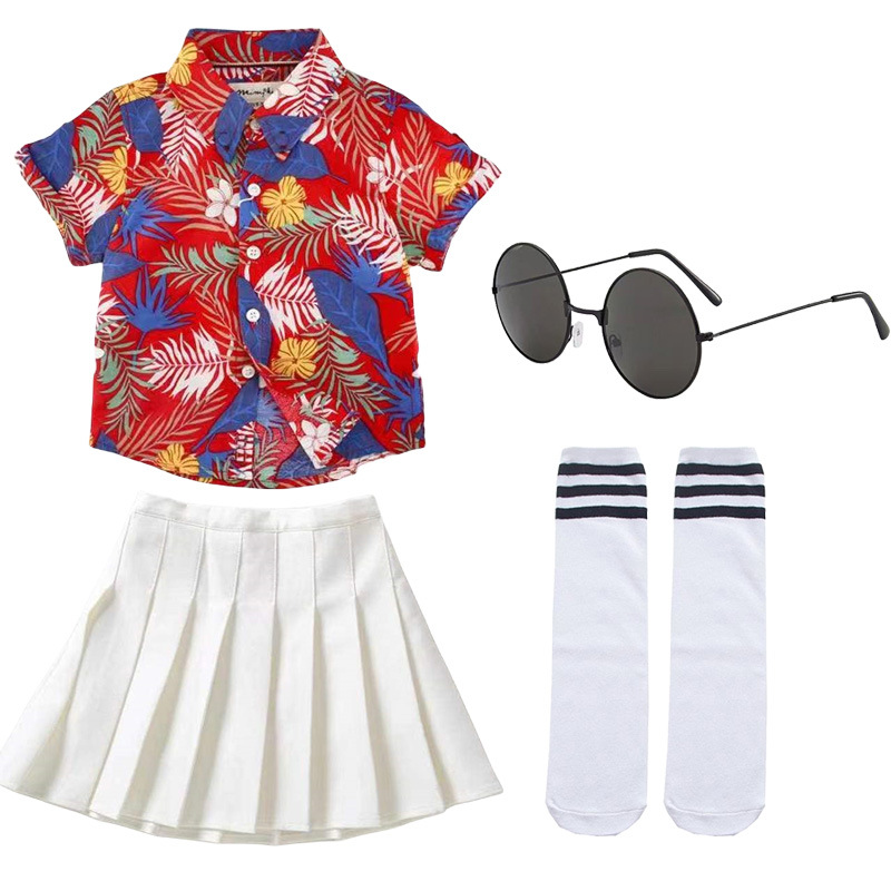 어린이 6 월 1 일 꽃 셔츠 치어 세트 홍콩 바람 꽃 보호자 춤 세트 해변 휴일 Parin-어린이 세트 형제 자매 세트
