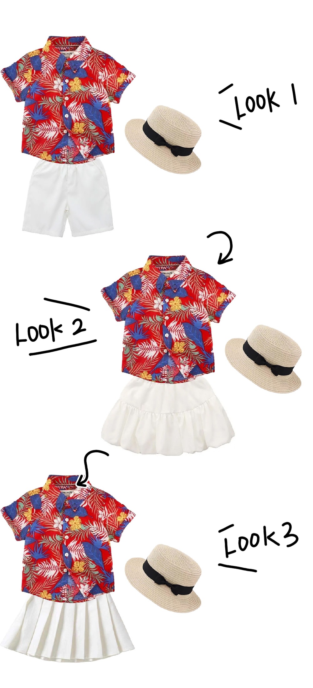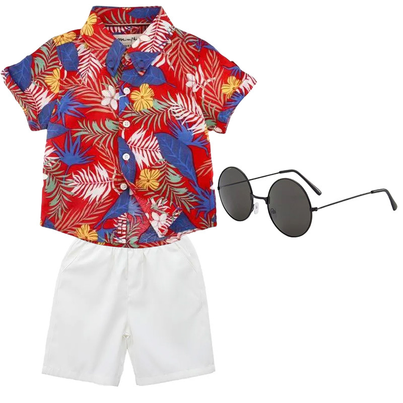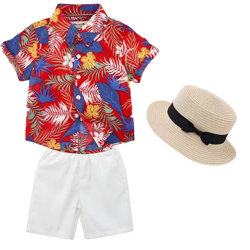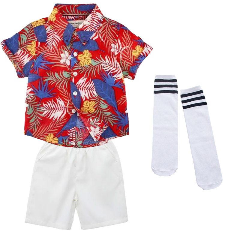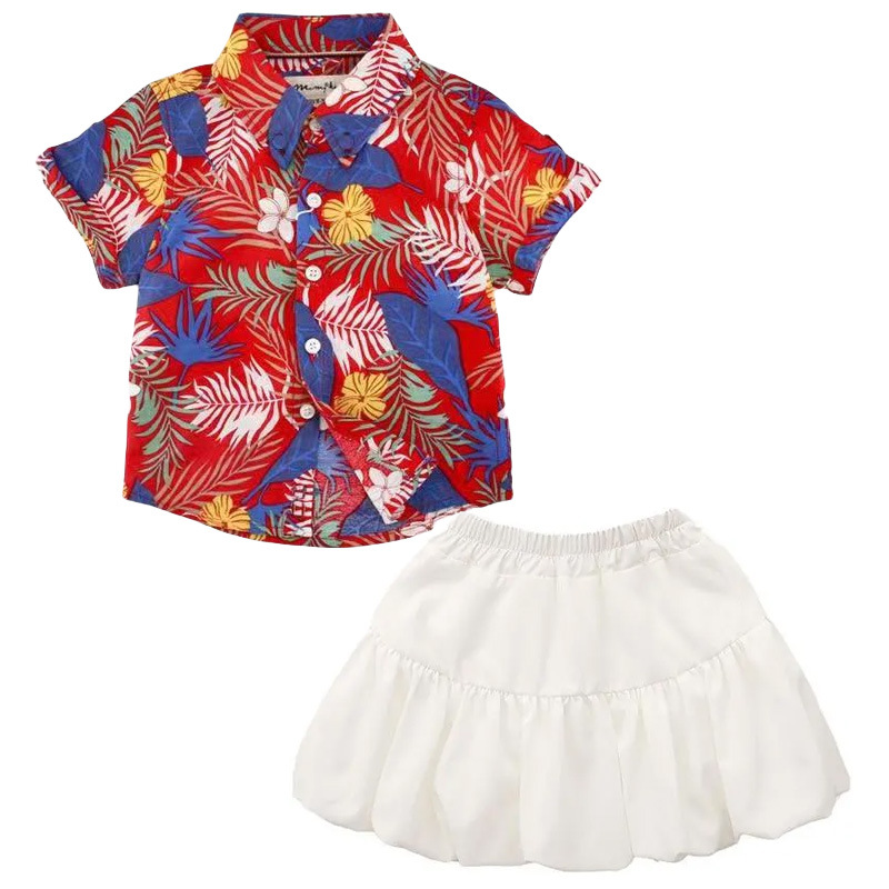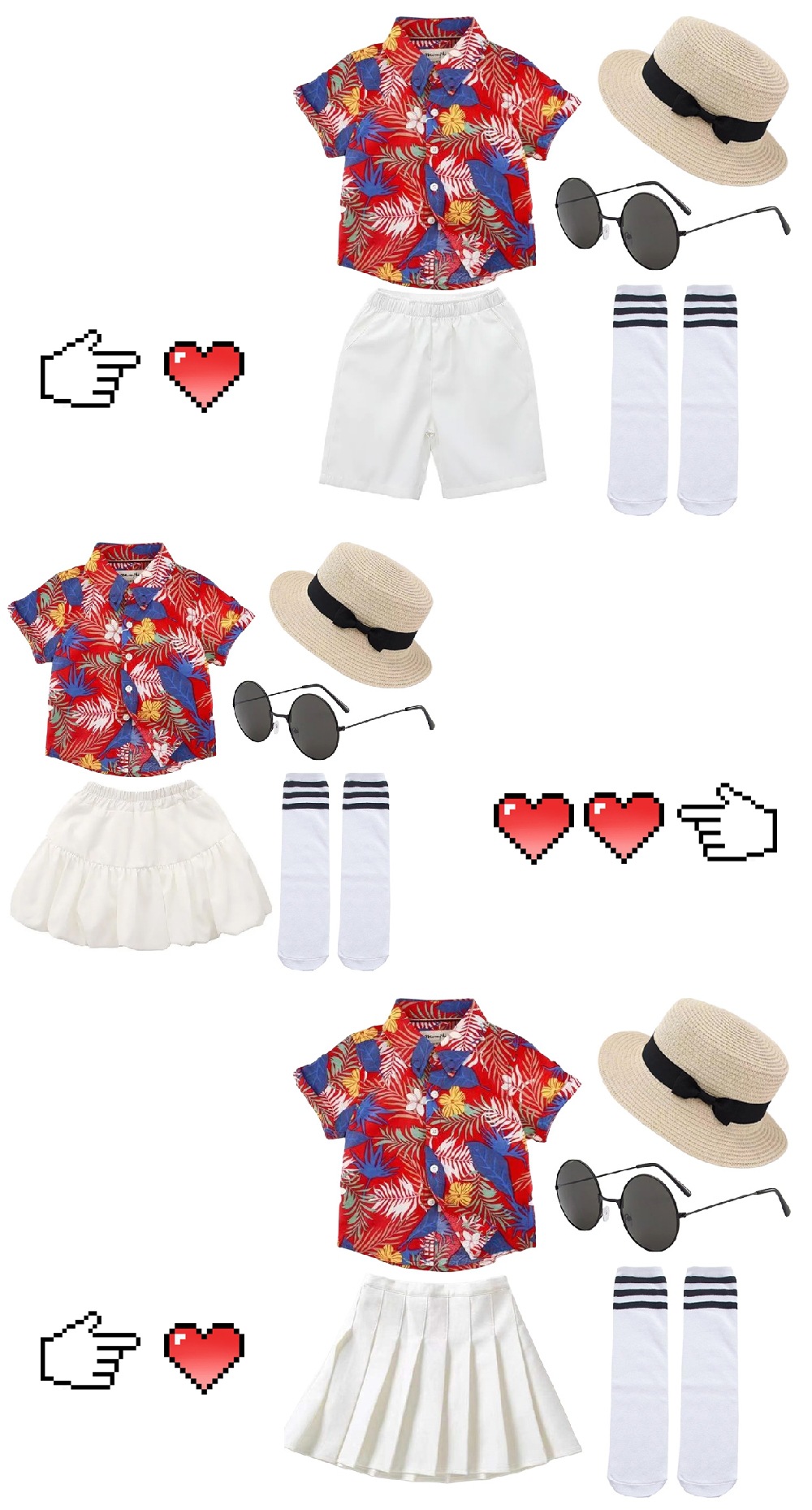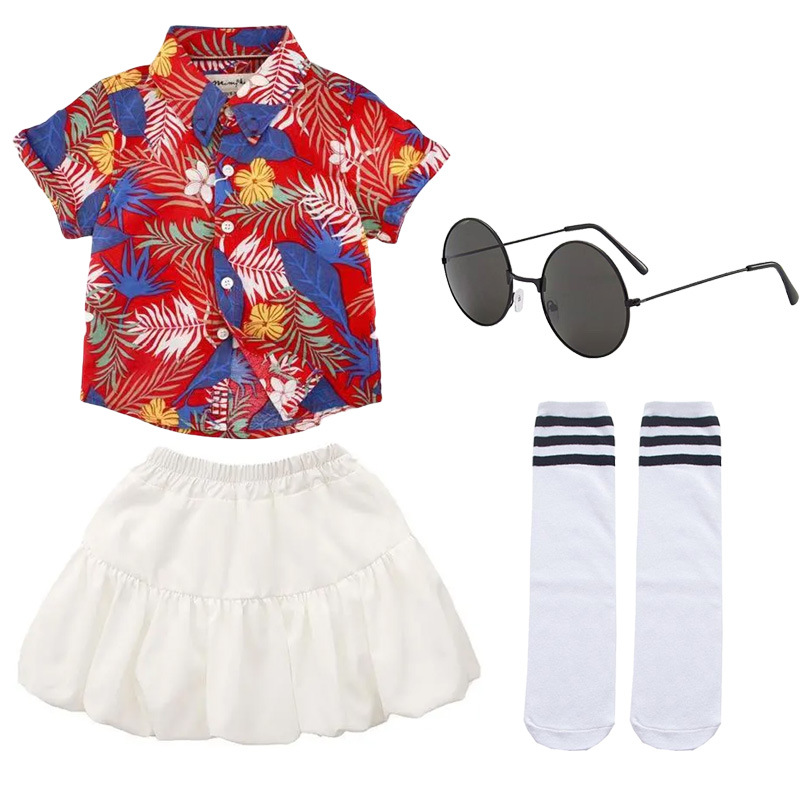 어린이 6 월 1 일 꽃 셔츠 치어 세트 홍콩 바람 꽃 보호자 춤 세트 해변 휴일 Parin-어린이 세트 형제 자매 세트
