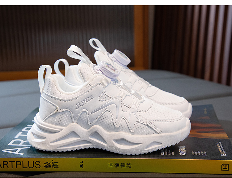스위블 버튼 여자 신발 2024 봄 새로운 어린이 스포츠 가을 여자 흰 신발 아빠 소프트 단독 유행