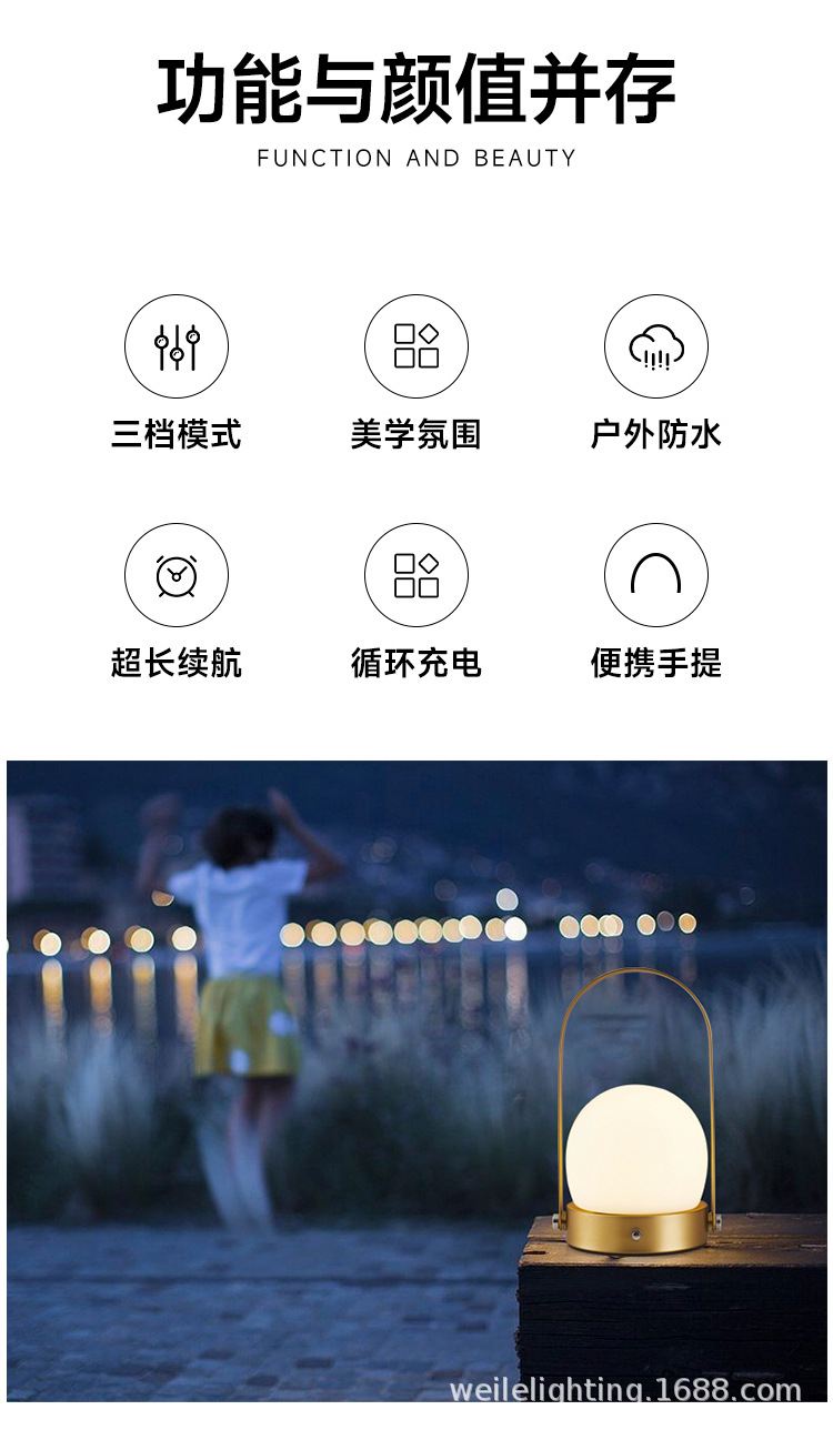 덴마크 레트로 휴대용 충전 테이블 램프 인 스타일 소녀 창조적 인 캠핑 휴대용 인터넷 연예인 밤 빛 분위기 빛 빛
