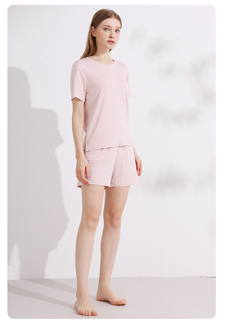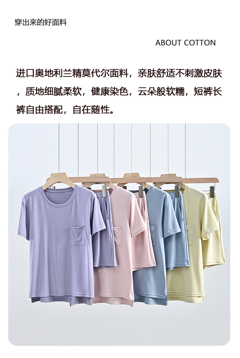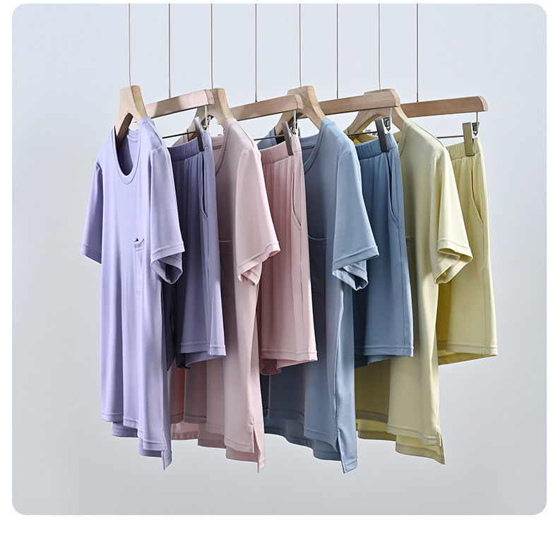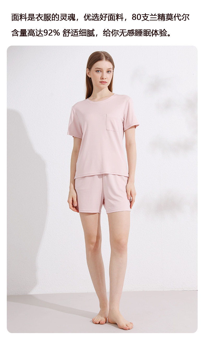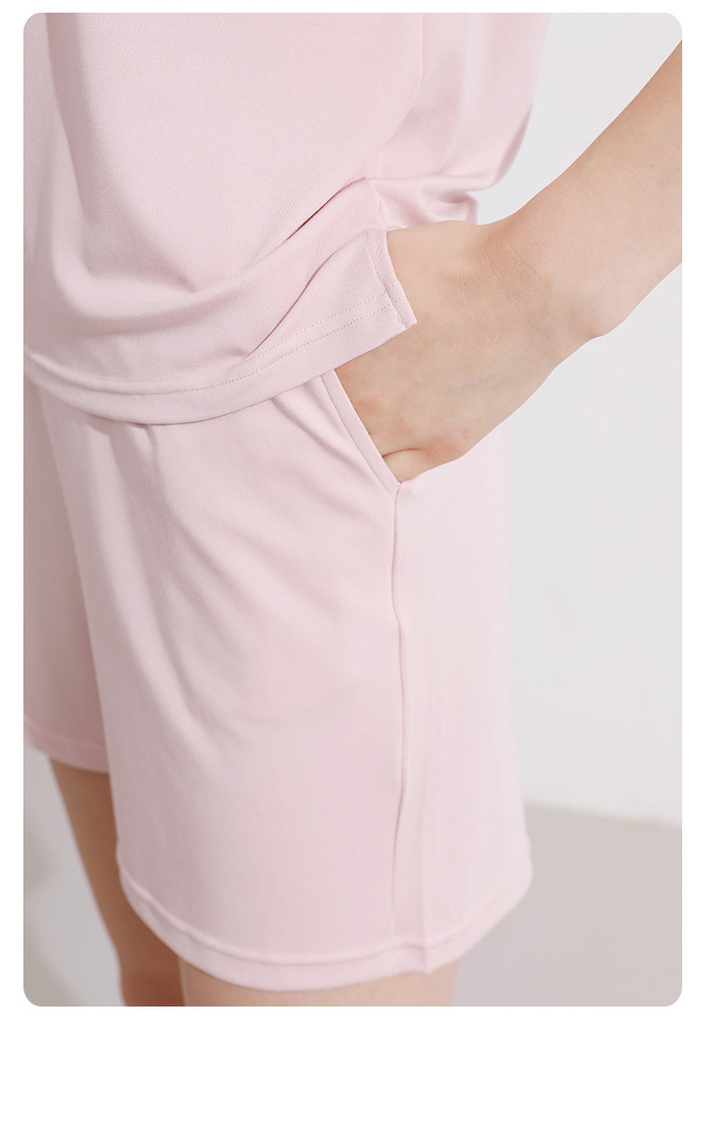여름 얇은 여성 80년대 렌징 모달 홈웨어 라운드 넥 느슨한 반팔 반바지 항균 슈트스토어 가기