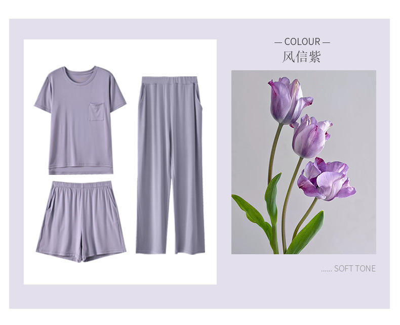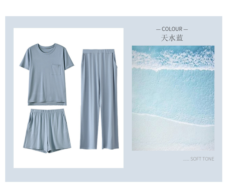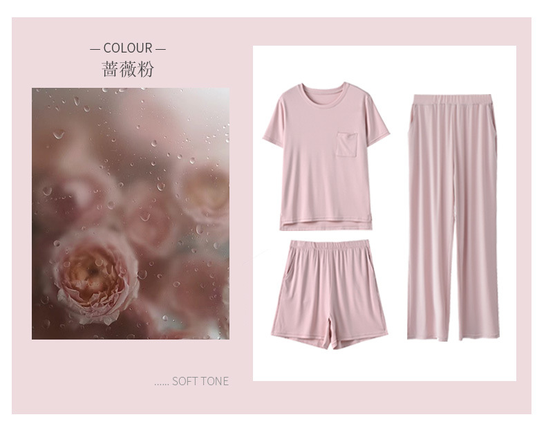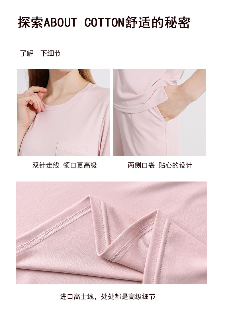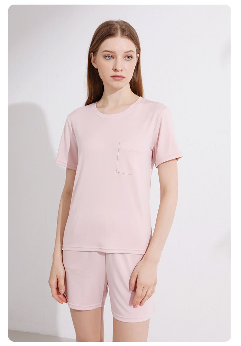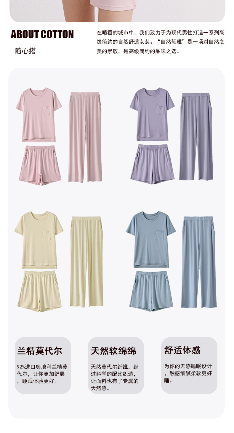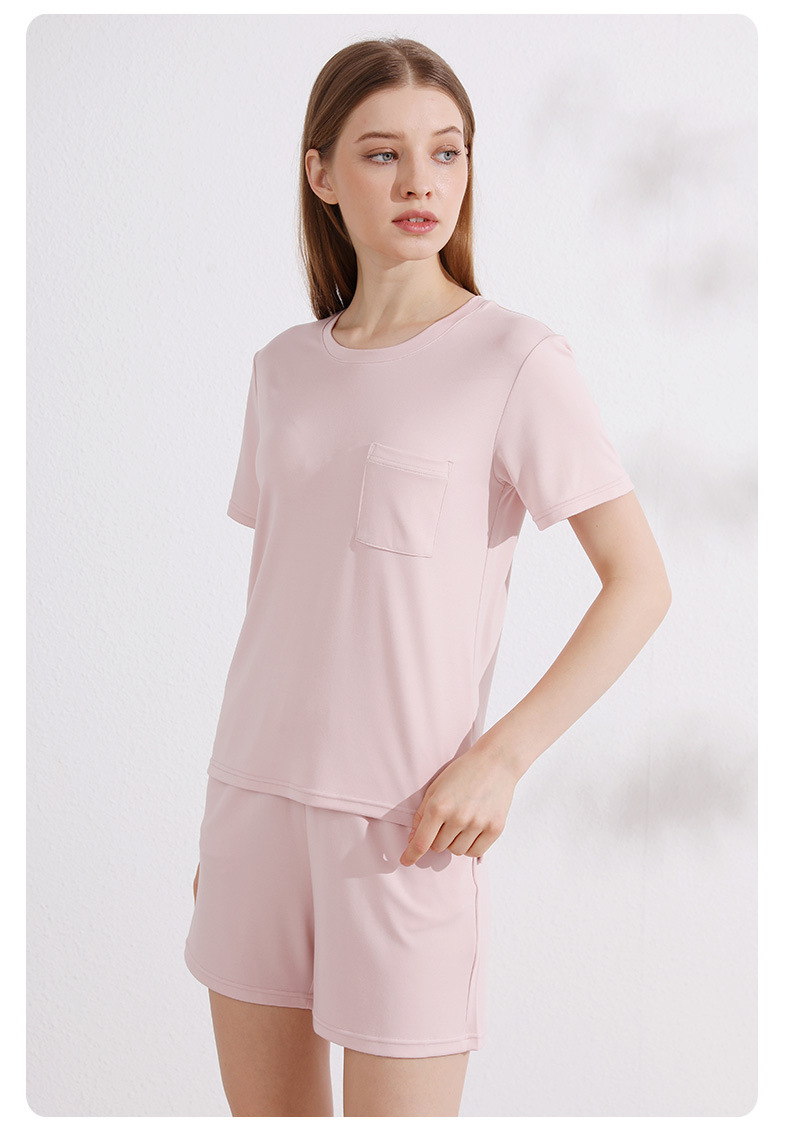 여름 얇은 여성 80년대 렌징 모달 홈웨어 라운드 넥 느슨한 반팔 반바지 항균 슈트스토어 가기