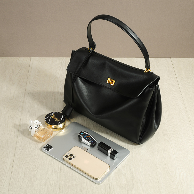 정품 가죽 새로운 로데오 대용량 토트 켈리 가방 칼프 스킨 핸드백 여성용 언더암 잠금 통근 가방