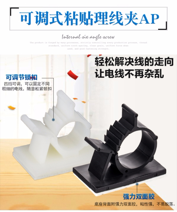 V45O 조정 가능한 고정 좌석 접착 와이어 고정 좌석 데스크탑 케이블 클램프 네트워크 케이블 마무리 하네스 버클 자체 접착 와이어