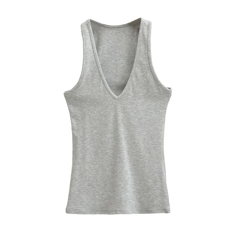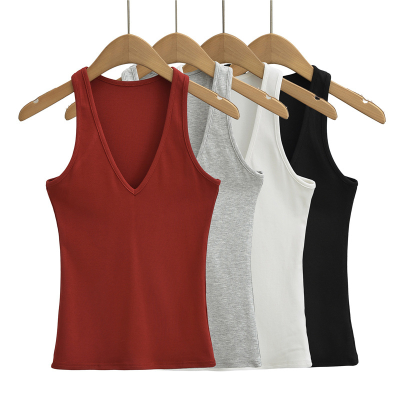 순수한 욕망 스타일 섹시한 깊은 V 넥 민소매 조끼 여름 새로운 올 매치 슬림 핏 슬리밍 캐주얼 스포츠 스파이스 걸 탑스토어 가기