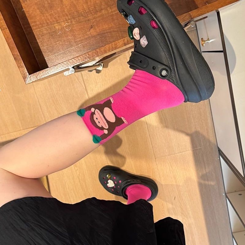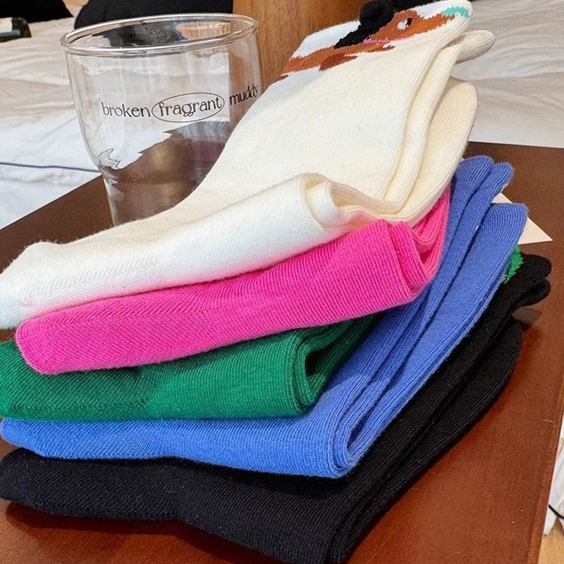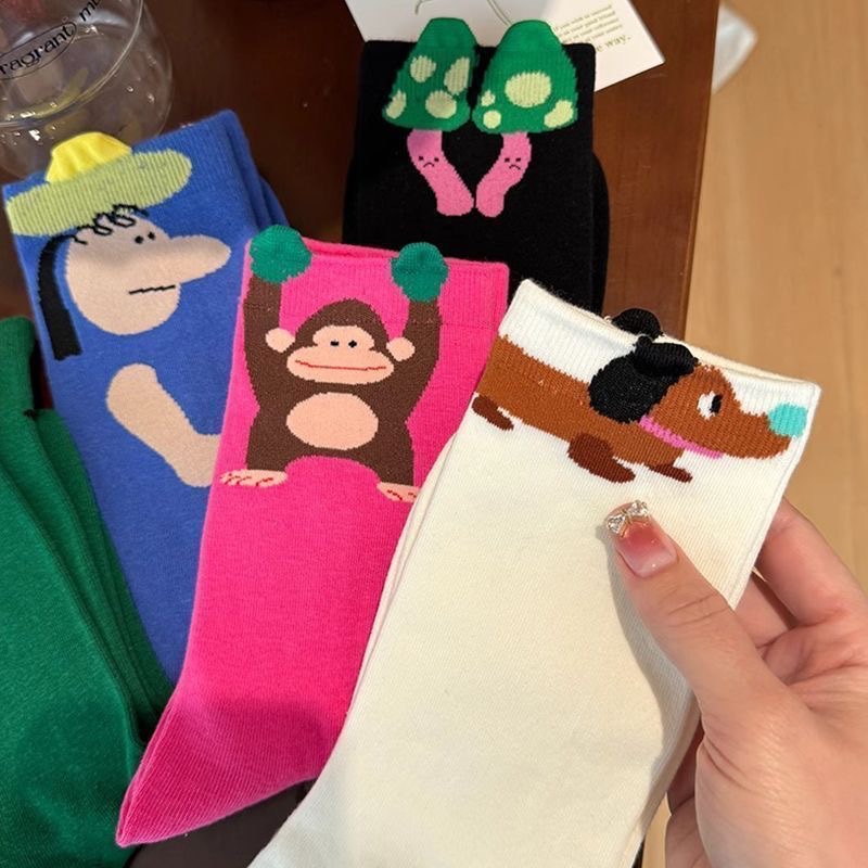 트렌디 한 그림 봄 새로운 양말 여성용 올 매치 학생 귀여운 중간 튜브 3 차원 서양식 땀 흡수 디자인스토어 가기