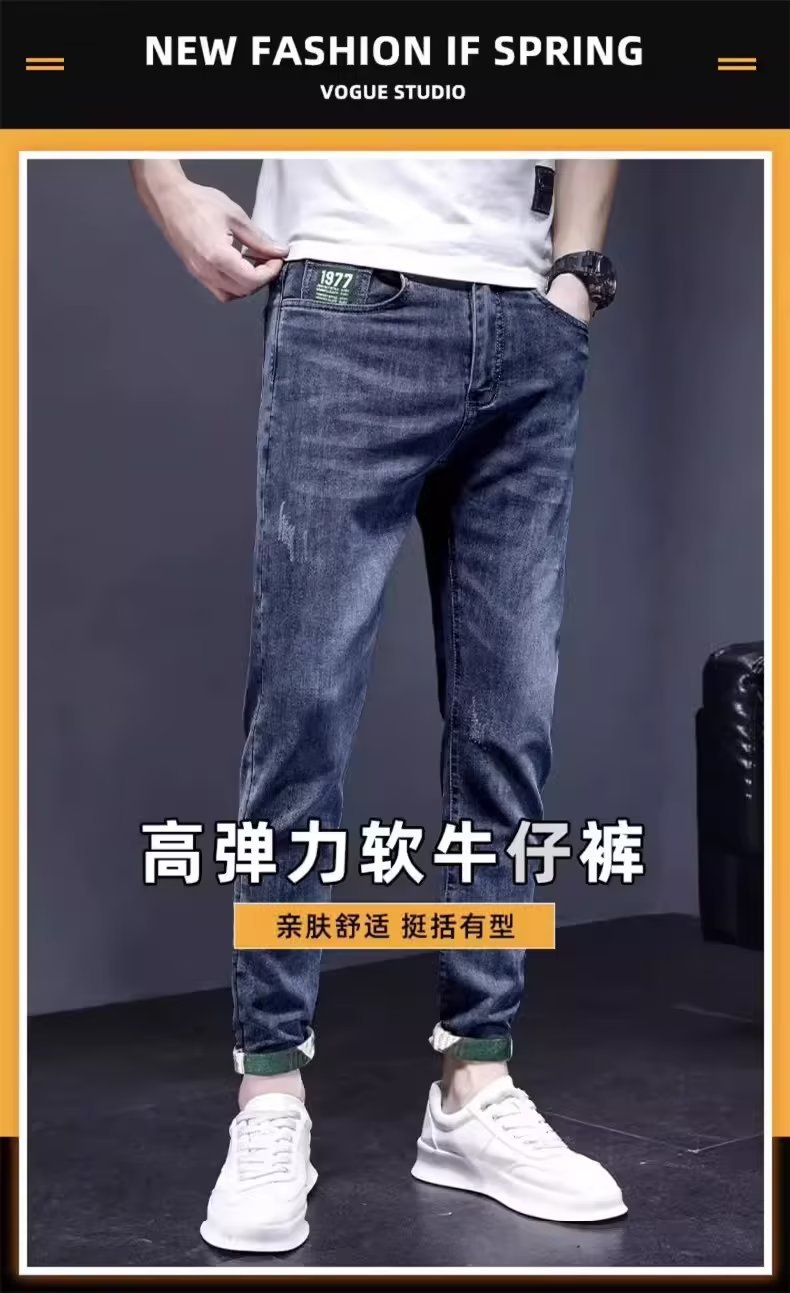 여름 얇은 청바지 남성용 슬림 핏 스키니 팬츠 2024 새로운 봄과 가을 트렌디 브랜드 스트레치 캐주얼 바지스토어 가기