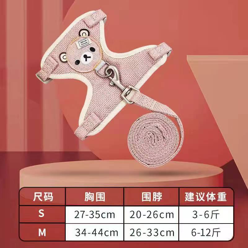 새로운 귀여운 곰 애완 동물 견인 로프 조끼 고양이 보편적 인 가슴 스트랩 고양이 걷는 개 걷는 로프 도매