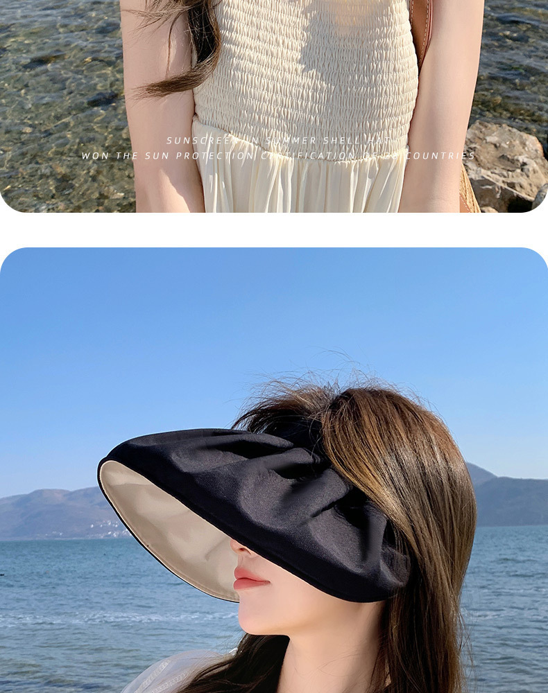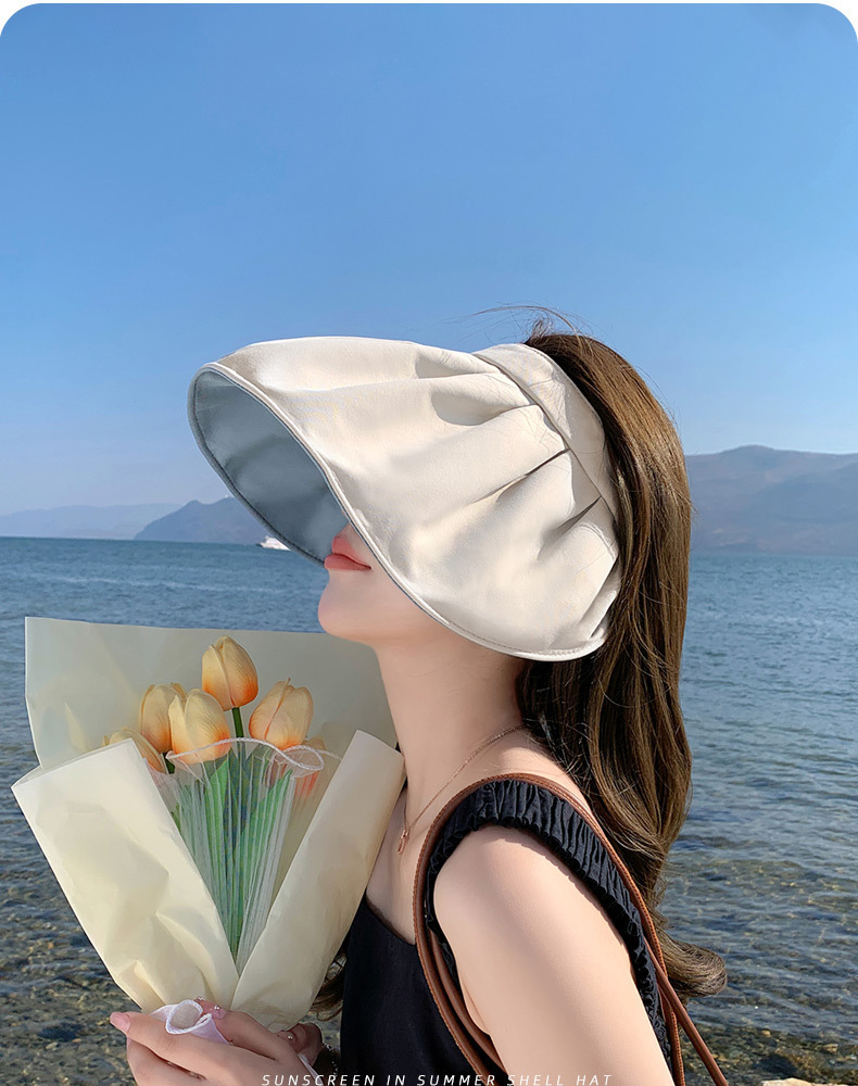선스크린 모자 여성의 여름 자외선 방지 빈 탑 햇빛 모자 태양 모자 큰 브림 얼굴 커버 접을 수있는 쉘 모자
