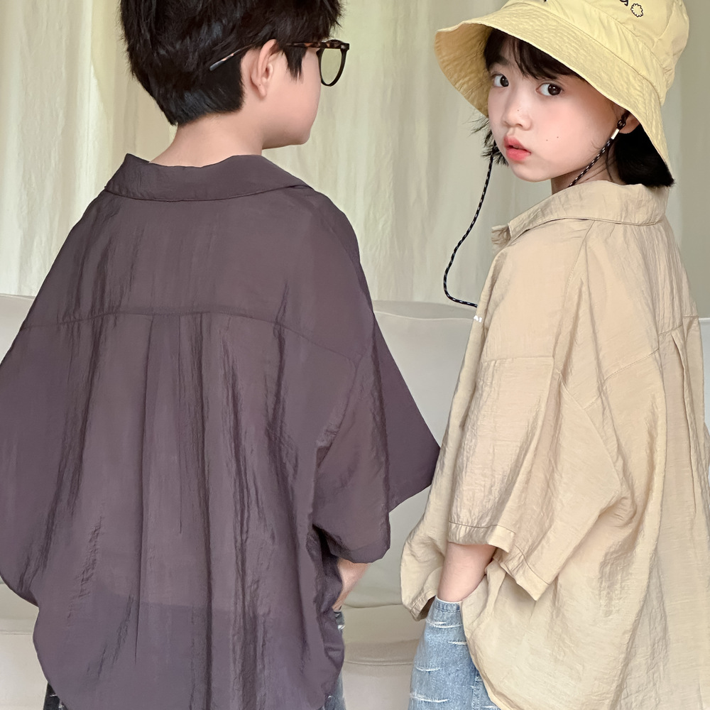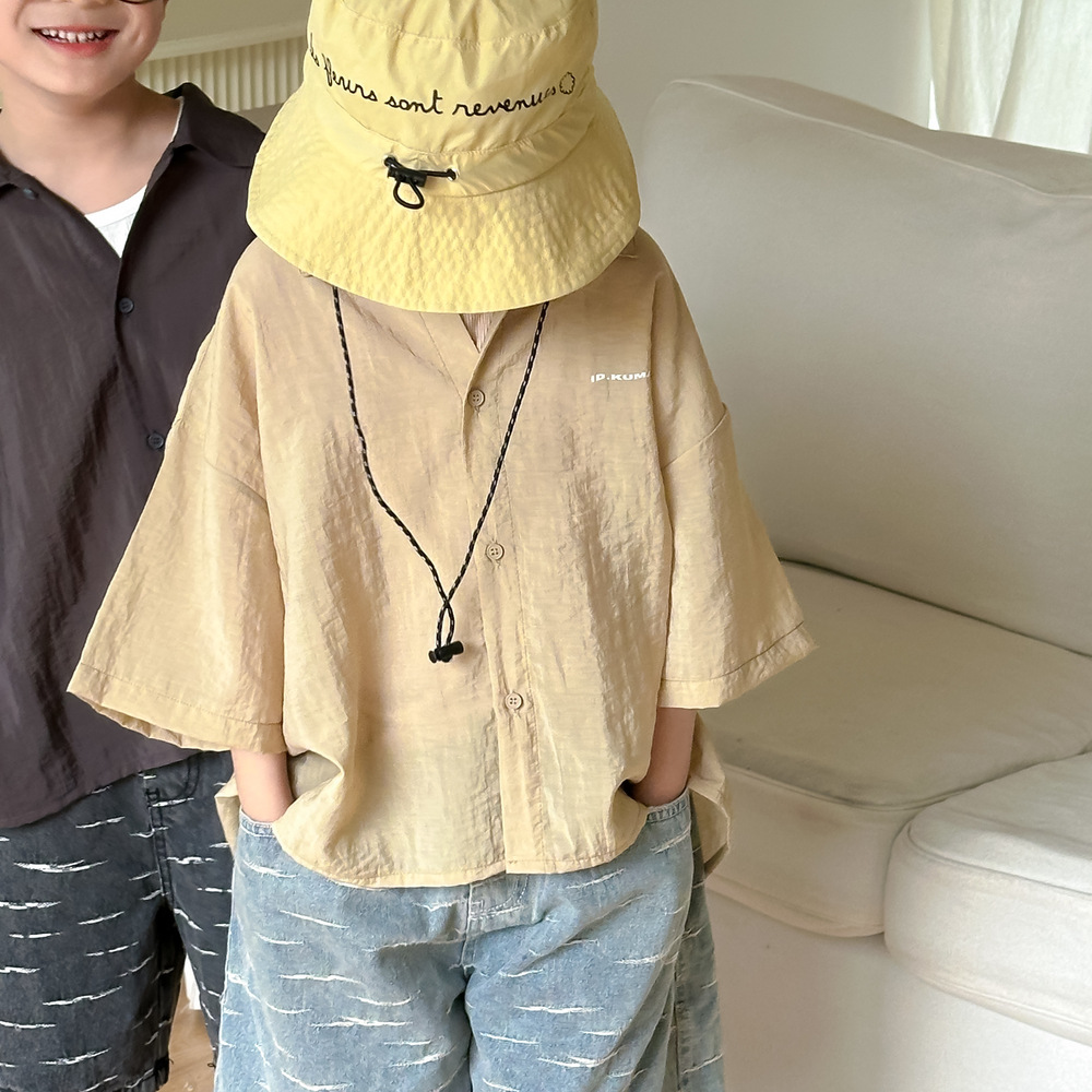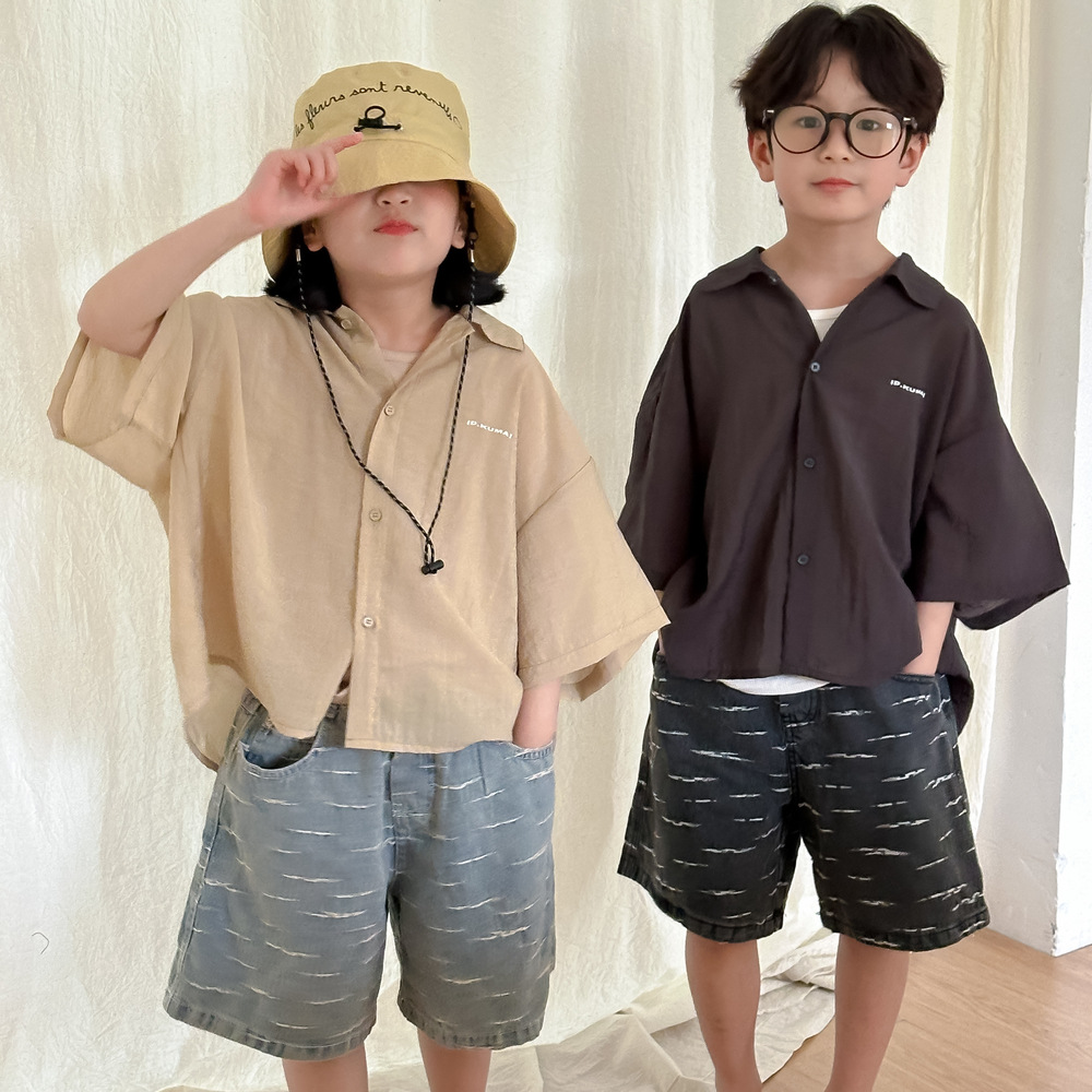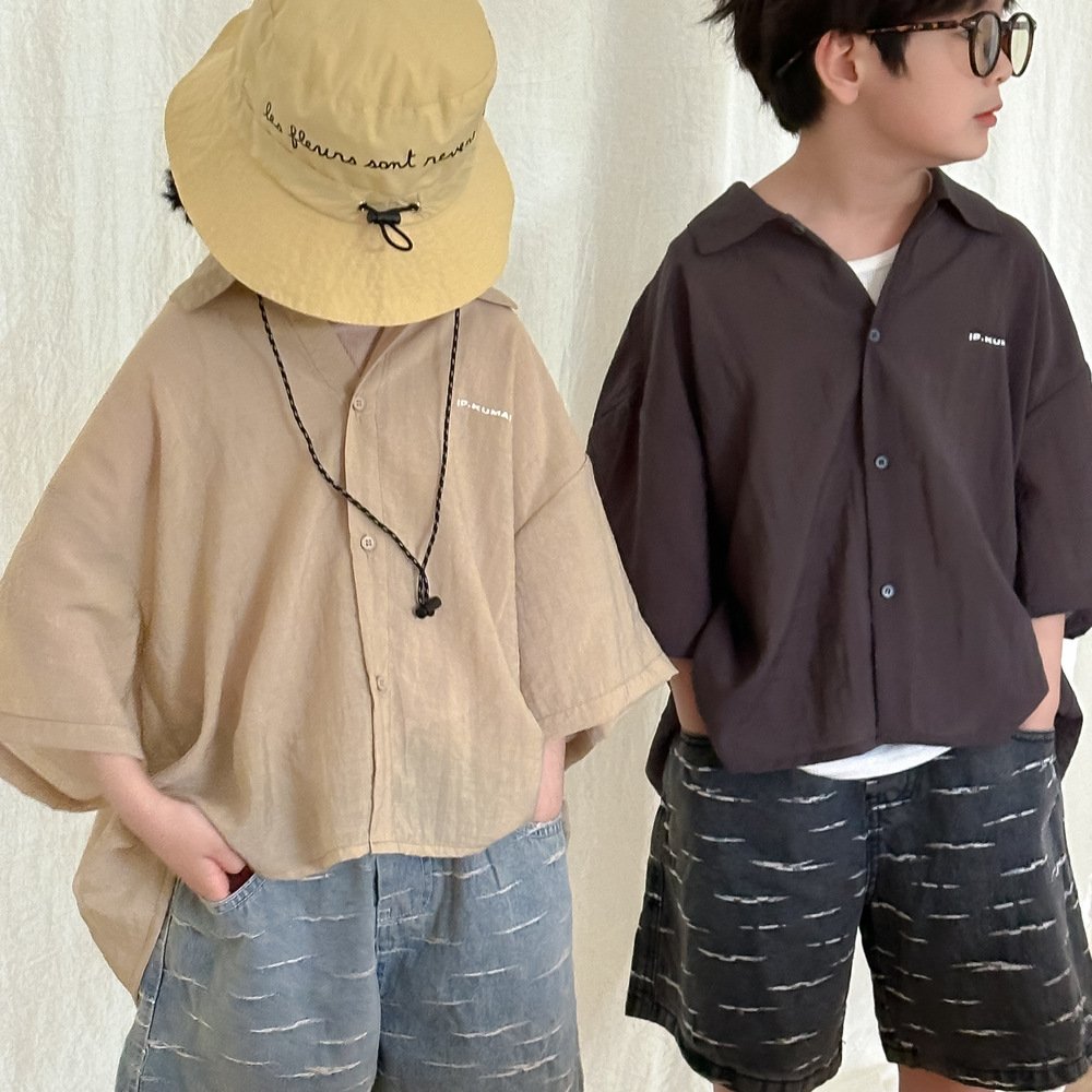 아동용 셔츠 2026 여름 스타일 남아 여아 한국 스타일 단색 레터링 반팔 아동용 라펠 캐주얼 5부소매 상의