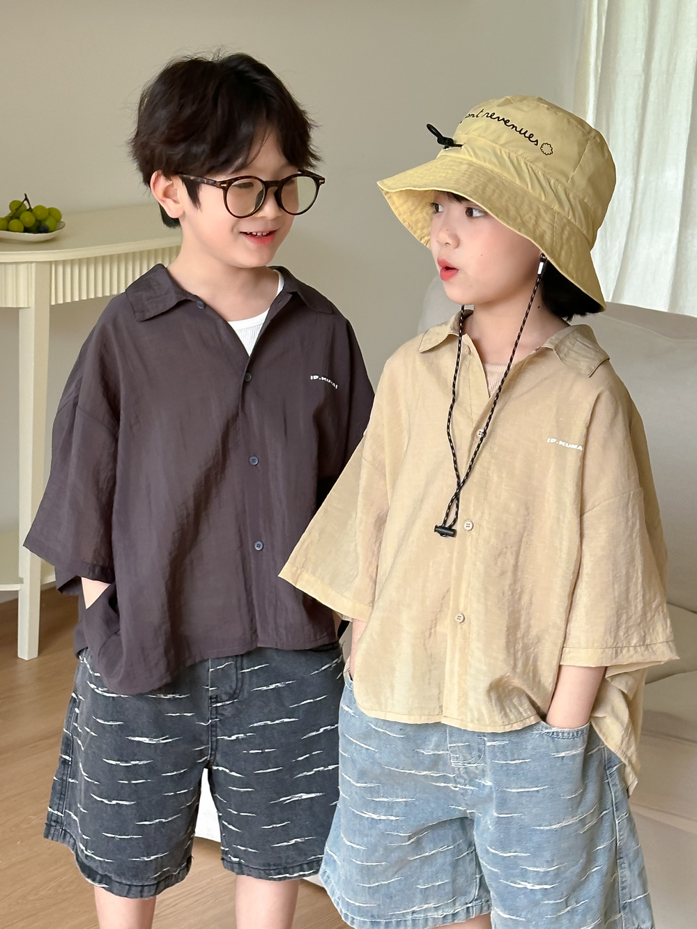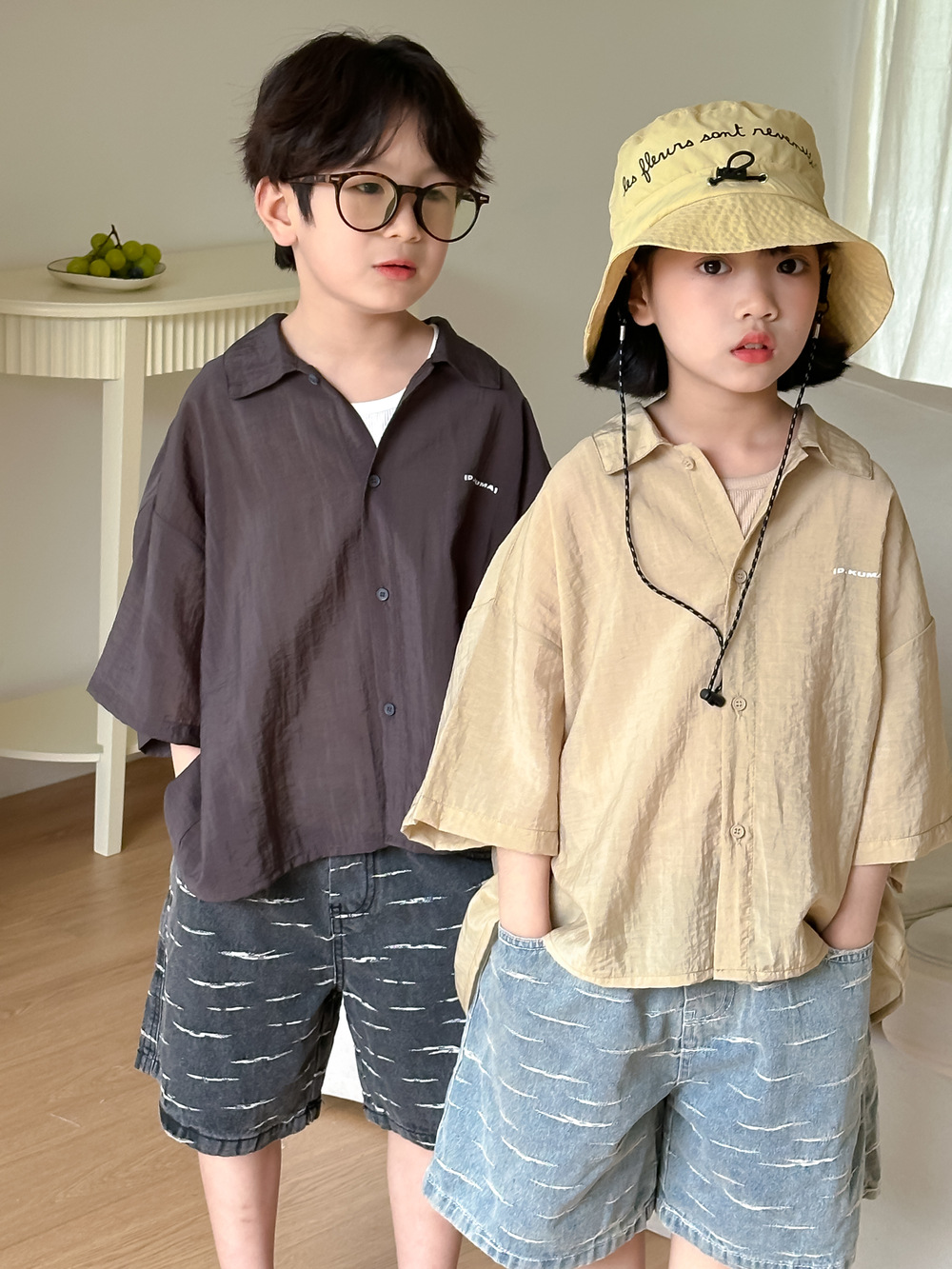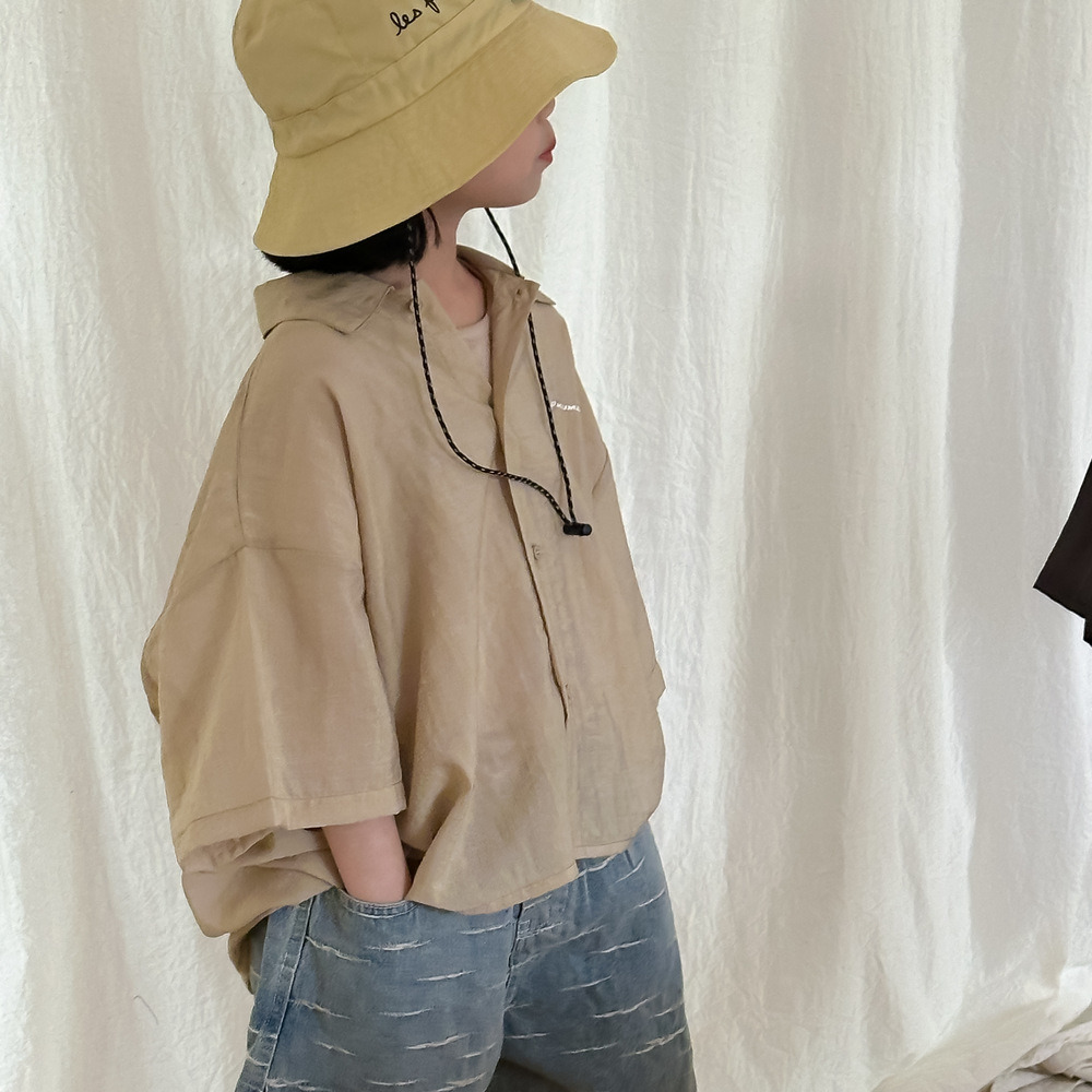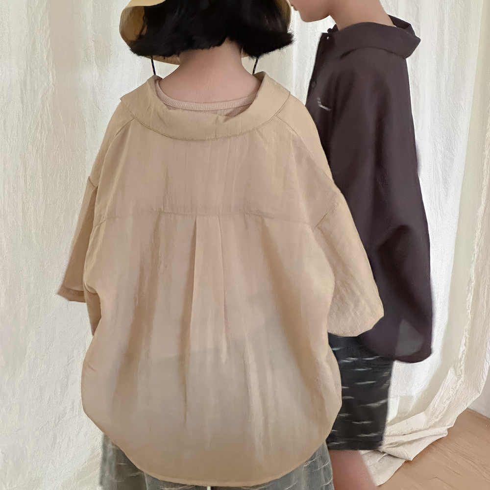 아동용 셔츠 2026 여름 스타일 남아 여아 한국 스타일 단색 레터링 반팔 아동용 라펠 캐주얼 5부소매 상의