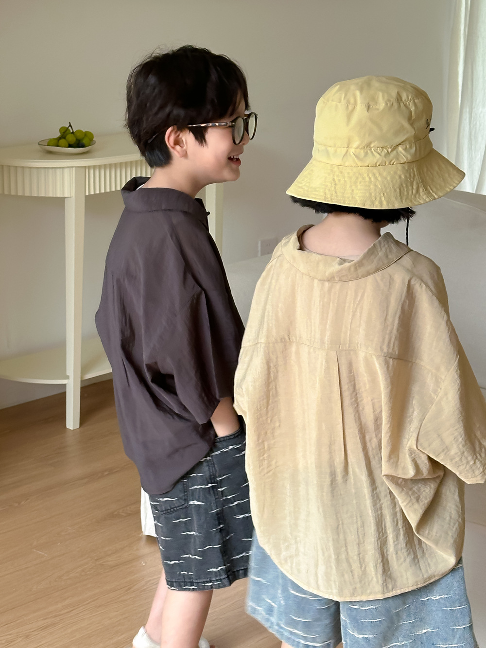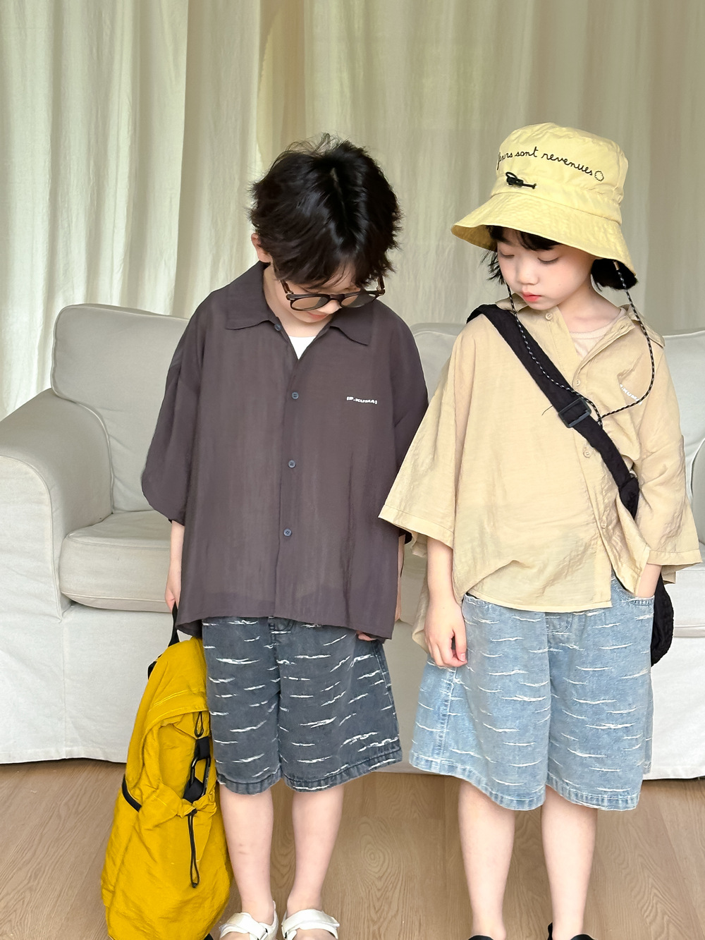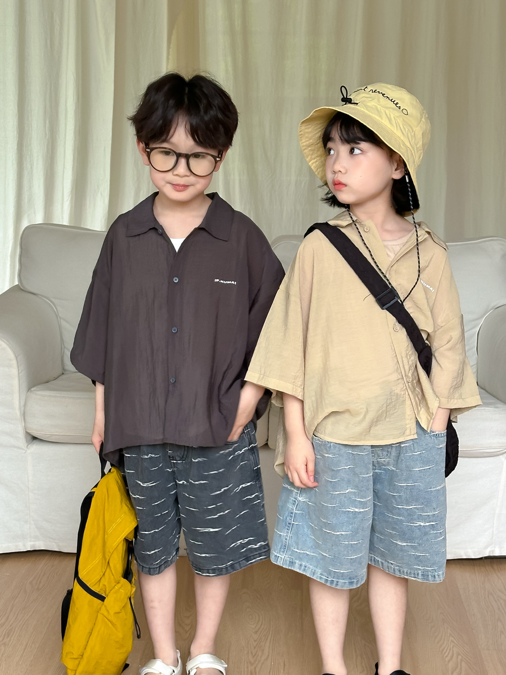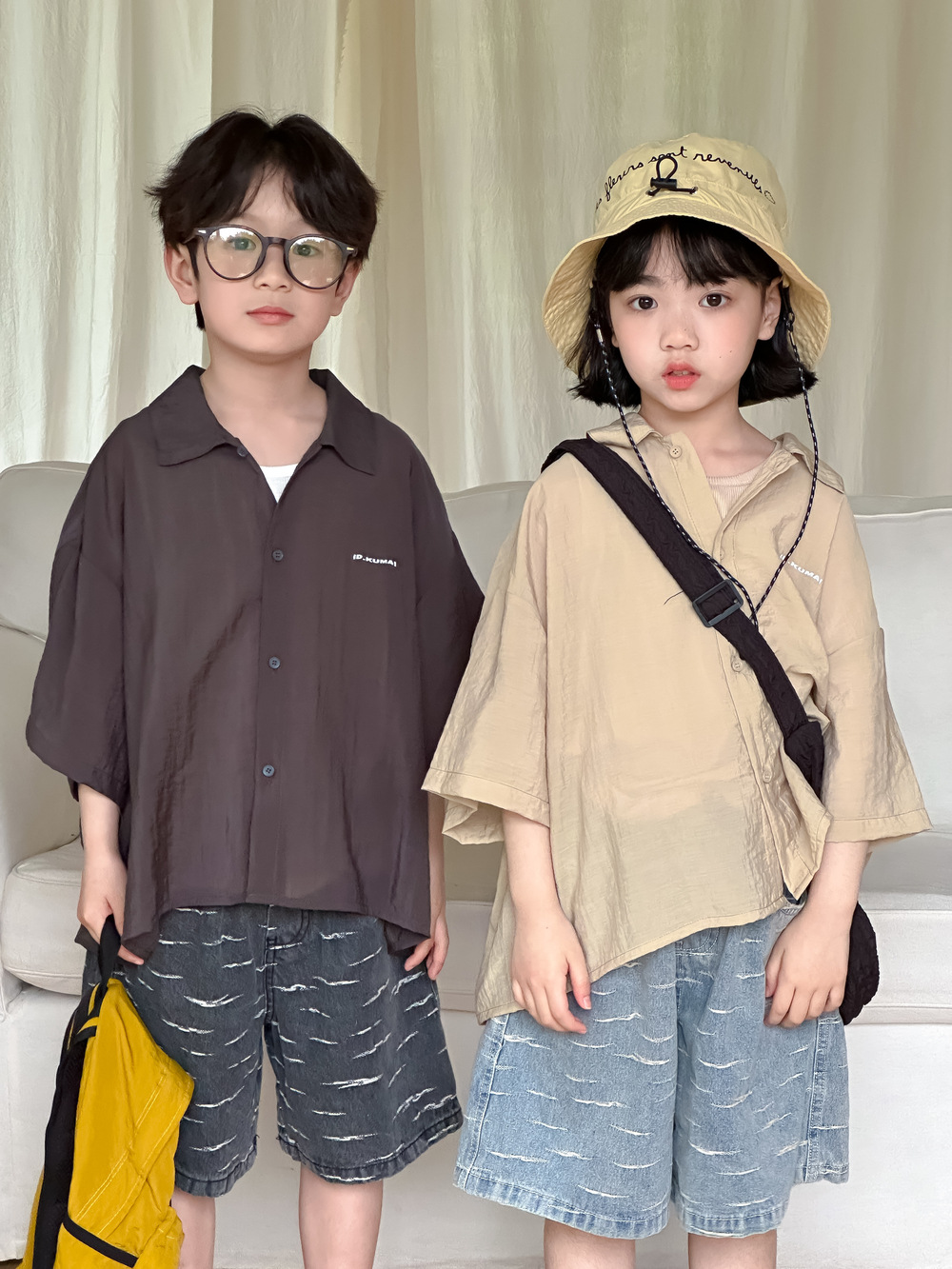 아동용 셔츠 2026 여름 스타일 남아 여아 한국 스타일 단색 레터링 반팔 아동용 라펠 캐주얼 5부소매 상의
