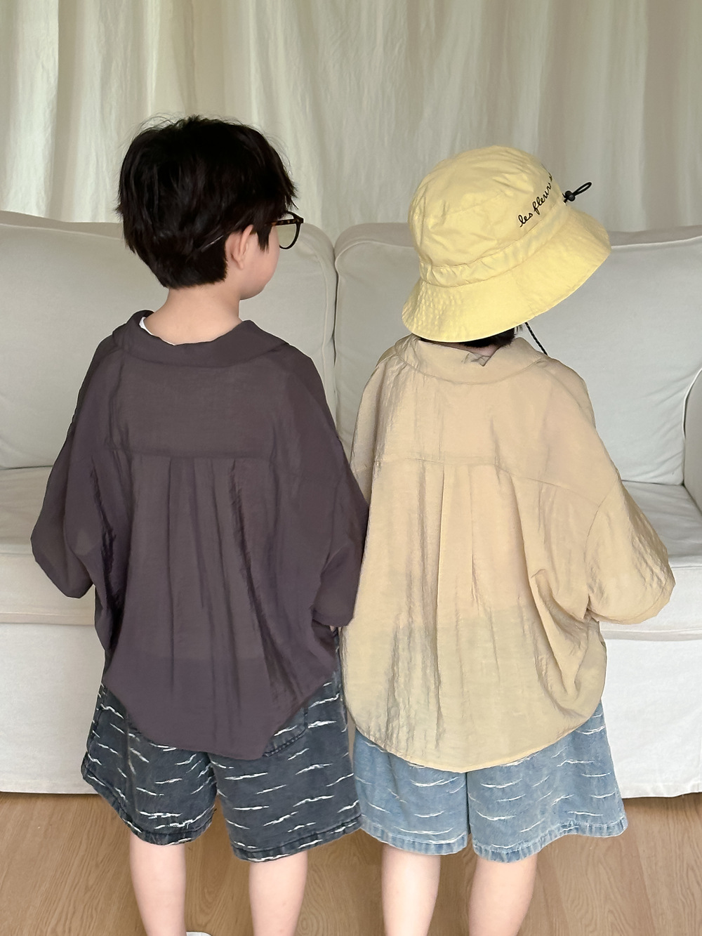아동용 셔츠 2026 여름 스타일 남아 여아 한국 스타일 단색 레터링 반팔 아동용 라펠 캐주얼 5부소매 상의스토어 가기