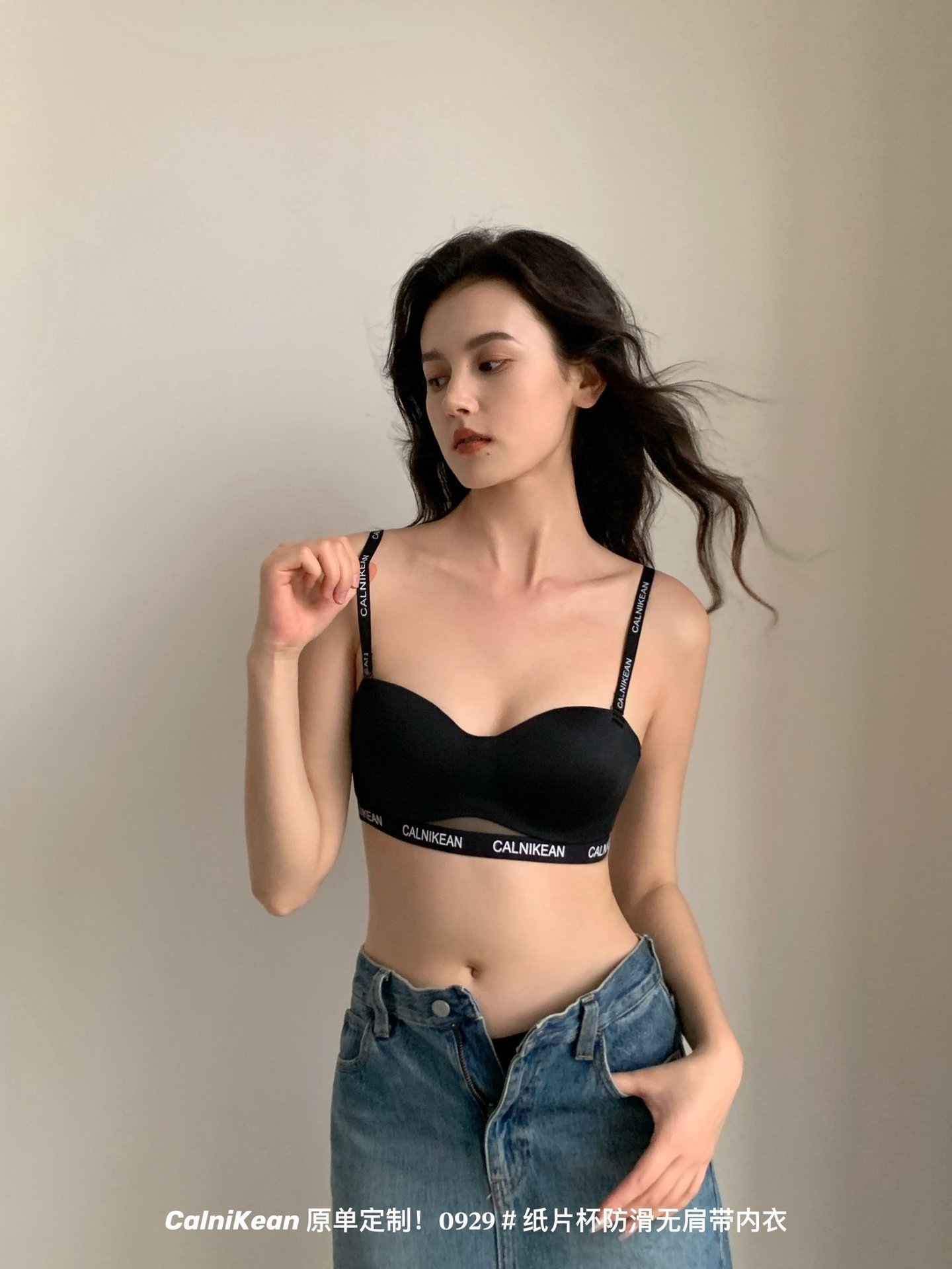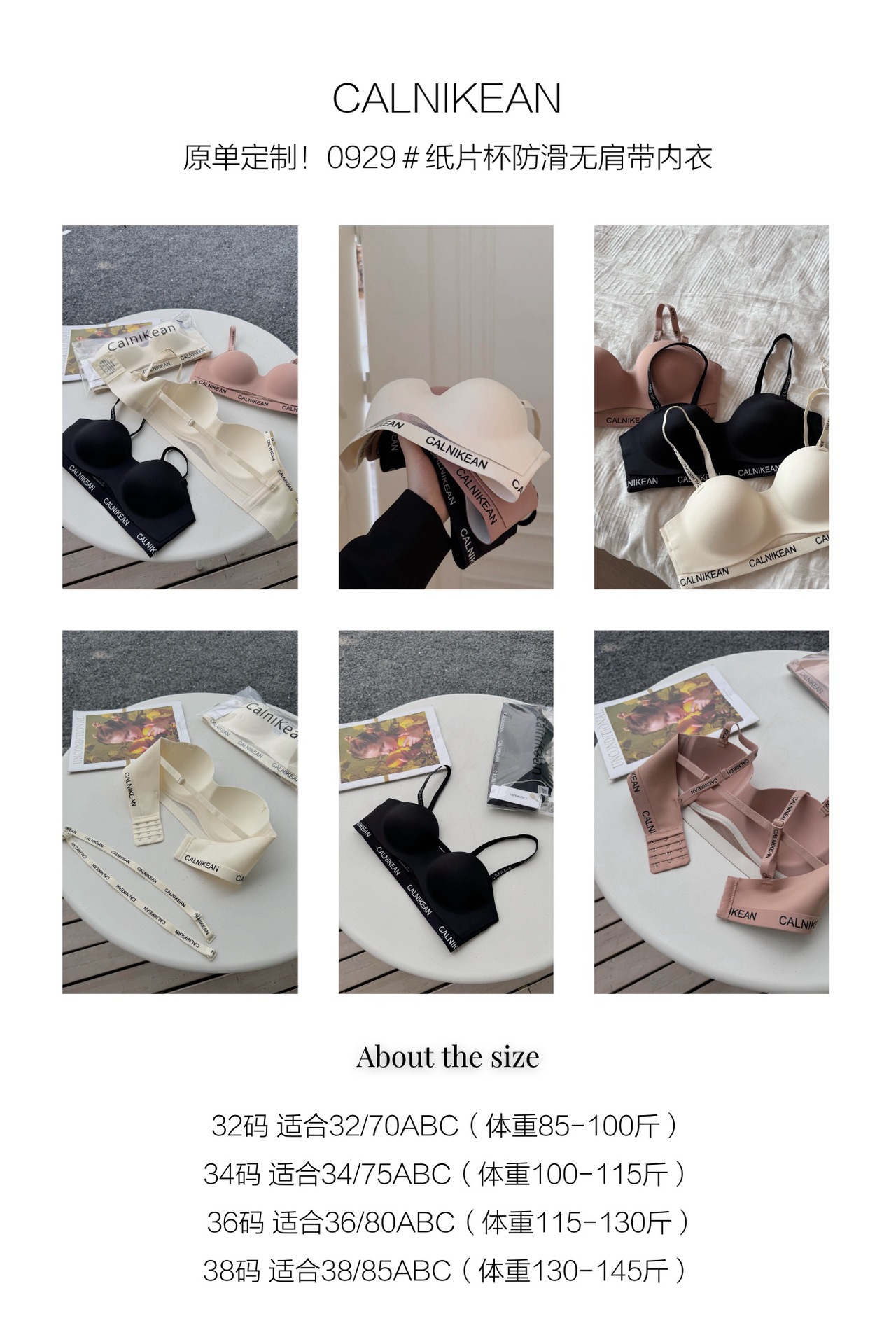0929 오리지널 페이퍼 컵 미끄럼 방지 스트랩리스 속옷 여성 여름 편안한 원피스 컵 편지 어깨 스트랩 보이지 않는 브라