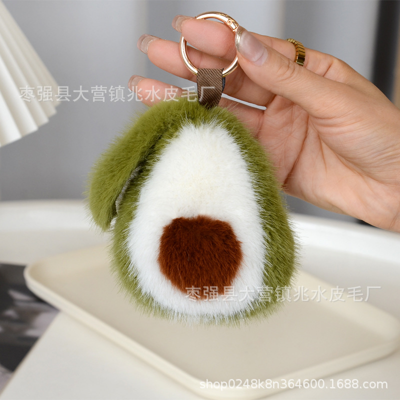 귀여운 아보카도 렉스 토끼털 자동차 키홀더 인형 인스 스타일 털공 가방 장식 선물 인형