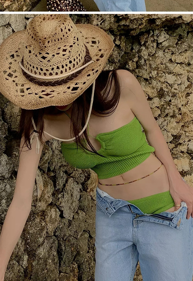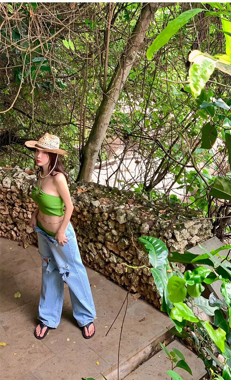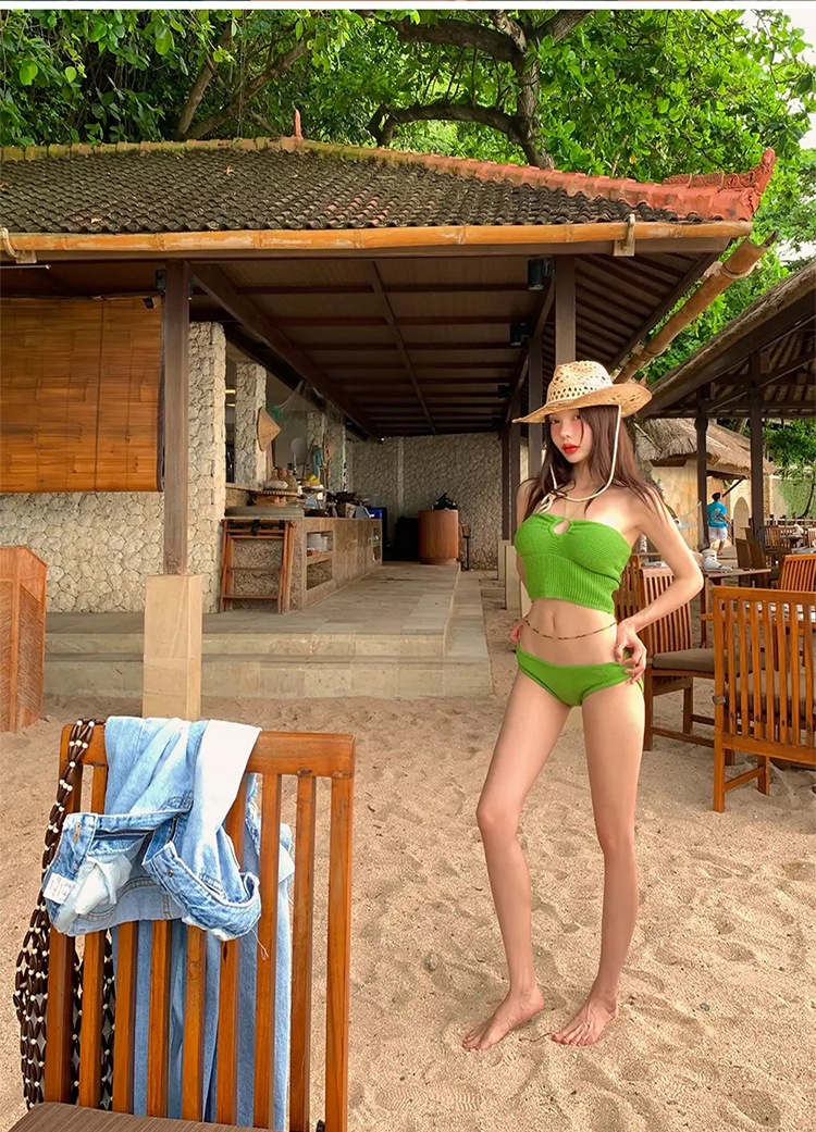 한국 스타일 라이트 럭셔리 여성 순수 스위트 스타일 물결 모양의 천 사이즈 가슴 매달려 어깨 끈 분할 섹시한 수영복 수영복스토어 가기