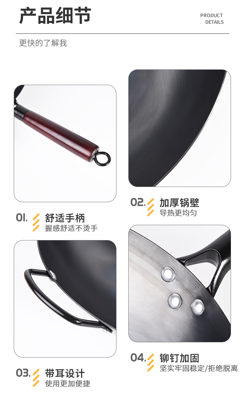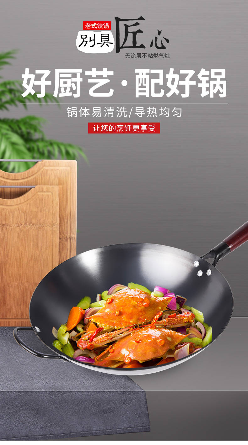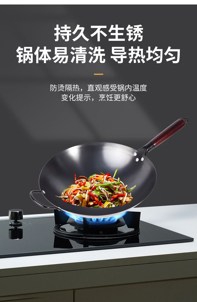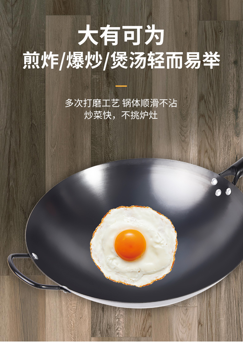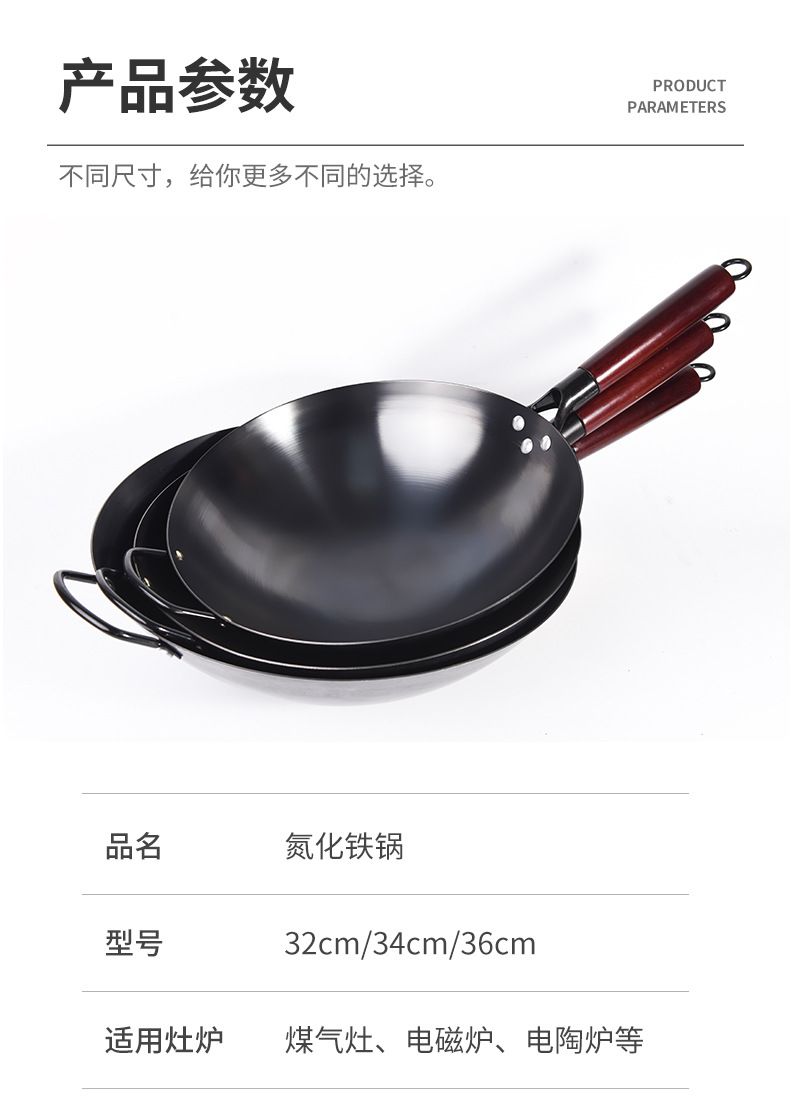 코팅되지 않은 철 질화물 팬 경량 라운드 하단 손으로 만든 철 팬 녹없는 붙지 않는 팬 가정용 폭발성 프라이팬 도매스토어 가기