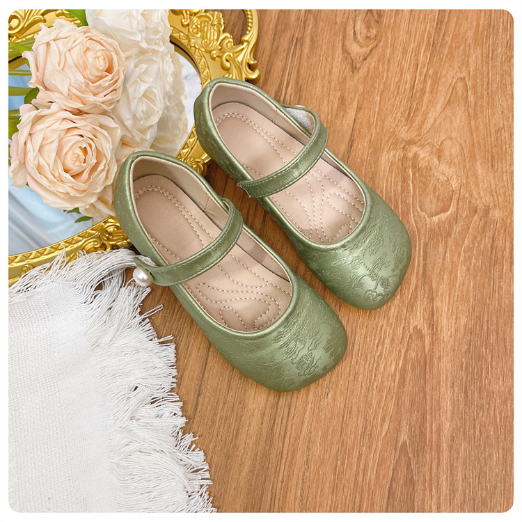 어린이 한푸 신발 2025 새로운 중국 스타일 말 얼굴 치마 소녀 신발 봄과 가을 여성 보물 골동품 신발 작은 가죽 신발
