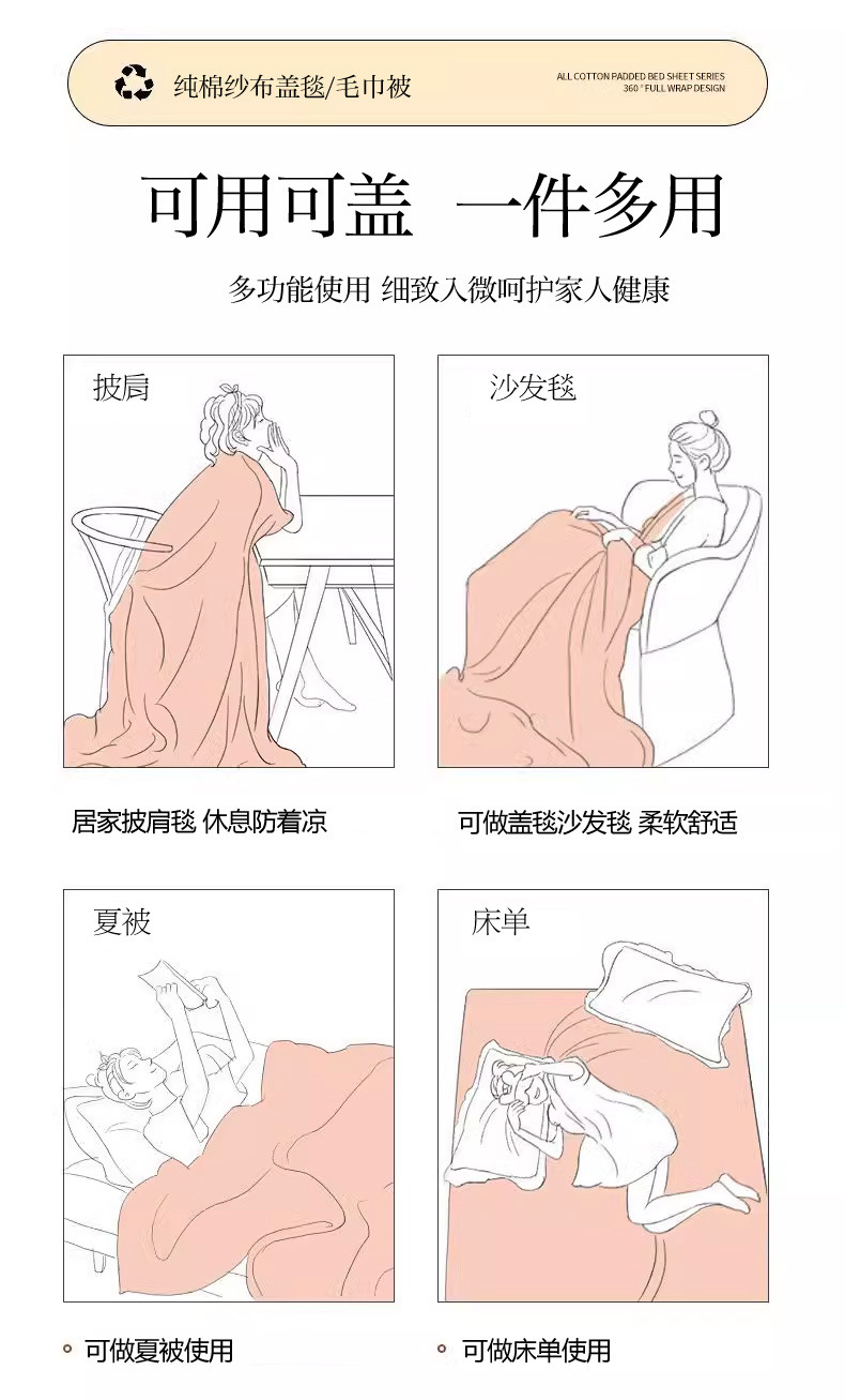 클래스 A 모성 및 유아용 면화 3 층 실 다기능 여름 이불 커버 담요 이중실 침구 소파 담요스토어 가기