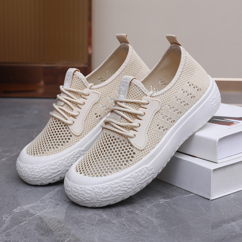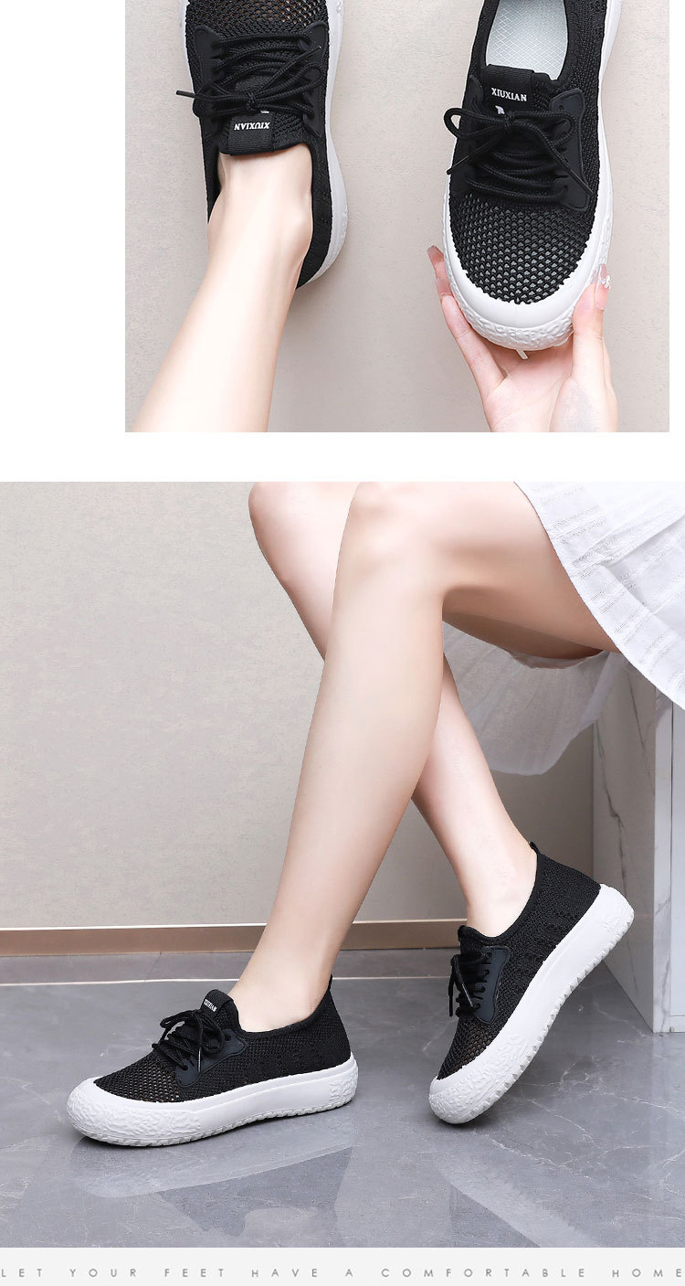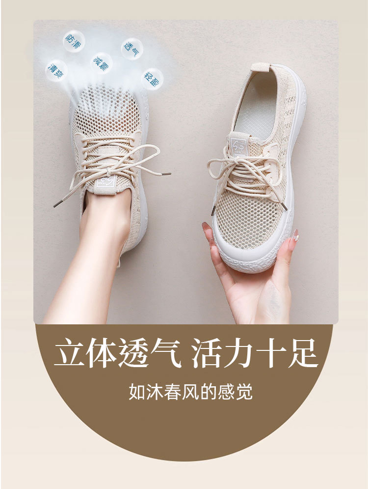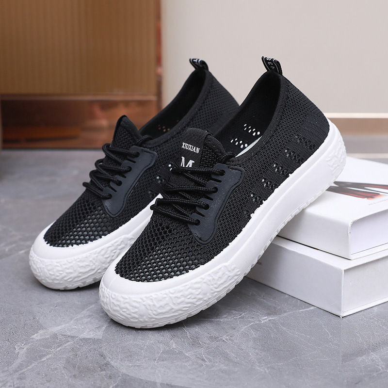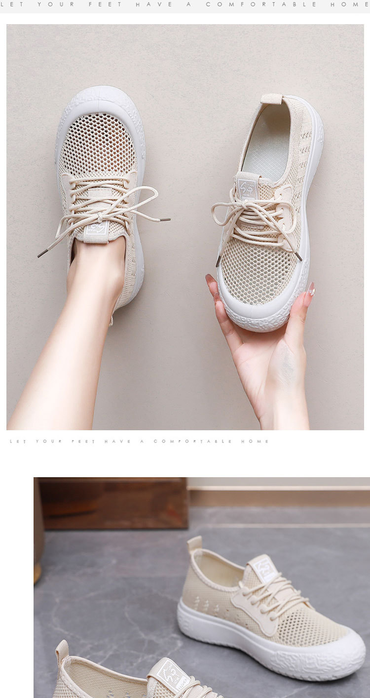 여름 올드 베이징 여자 플라잉 메쉬 운동화 할로우 통기성 부드러운 밑창 캐주얼 올 매치 슬립 온 메쉬 신발스토어 가기