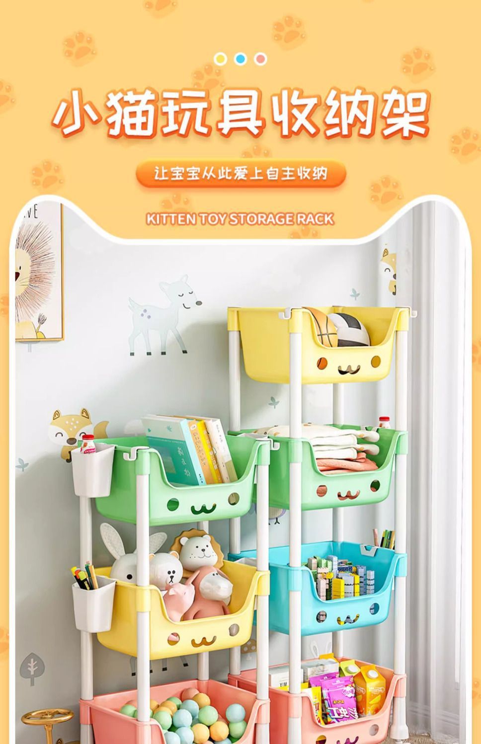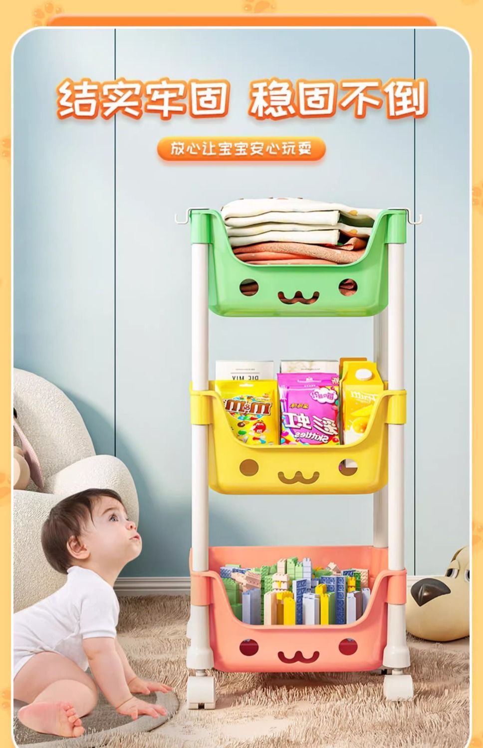 작은 카트 보관 랙 가정용 어린이 장난감 보관 랙 다층 그림책 책장 이동식 간식 선반 선반