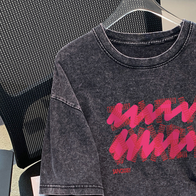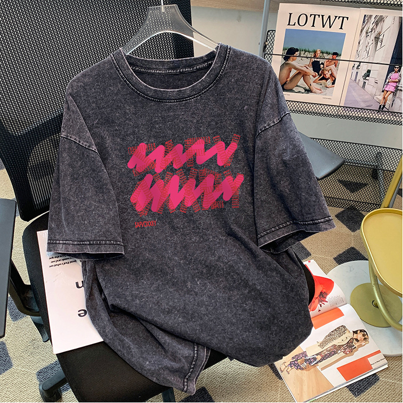 낡은 패션 브랜드 디자인 센스 레터 프린트 반팔 티셔츠 남성과 여성의 여름 힙합 오버 사이즈 올 매치 티셔츠