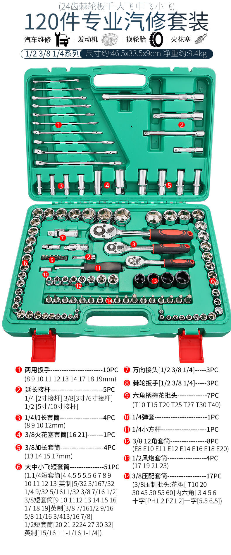 46피스 소켓 세트 조합 렌치 자동 수리 육각 십자형 매화 육각형 도구 세트