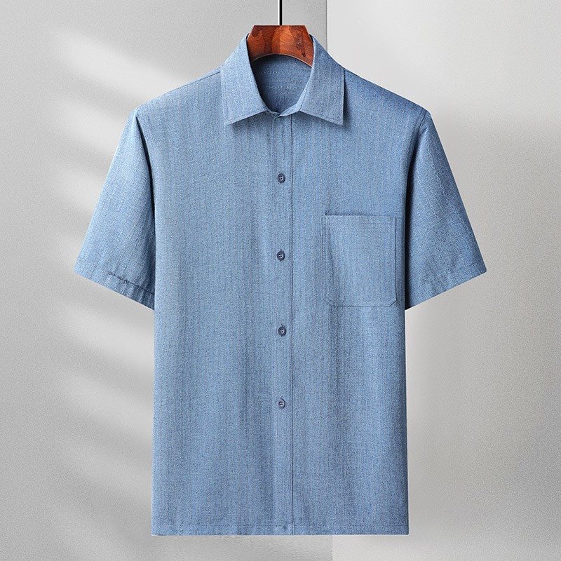 여름 아빠 코튼 리넨 셔츠 남성 중년 및 노인 느슨한 플러스 사이즈 반팔 여름 60-70-80 세 할아버지 셔츠
