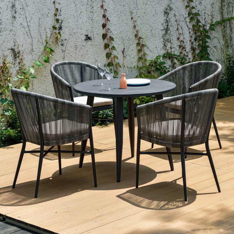 • 90cm 올알루미늄 원형테이블 + 의자 4개 (회색)