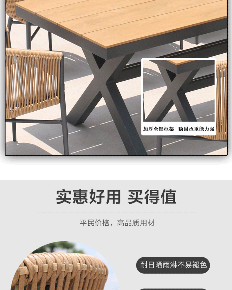 • 200x100cm 알루미늄판 롱테이블 + 의자6개(베이지)
