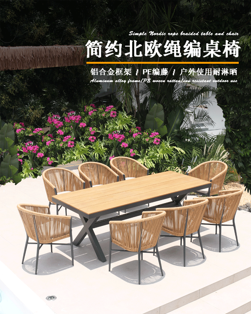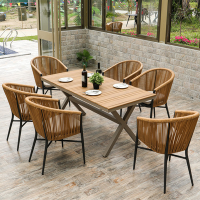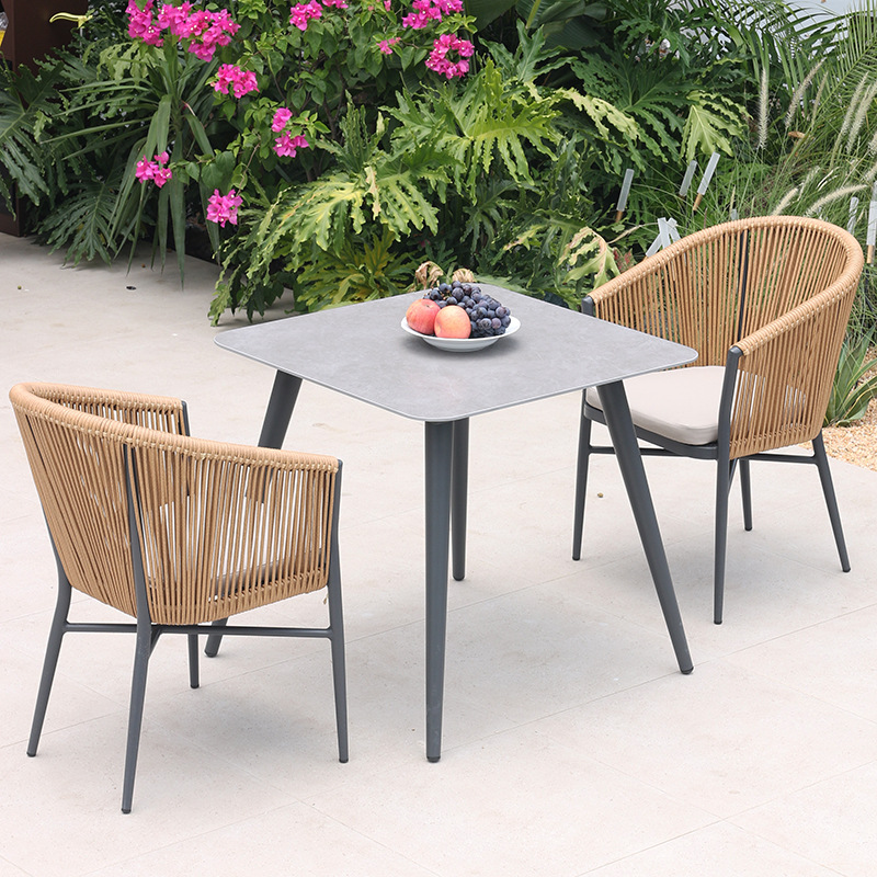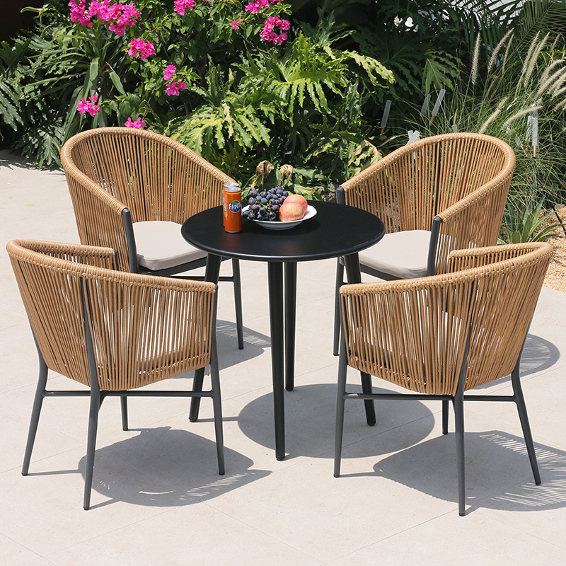맞춤형 야외 등나무 테이블과 의자, 방수 테이블과 의자, 빌라 안뜰 정원 가구, 밀크티 가게 발코니 등나무 의자 3종 세트스토어 가기