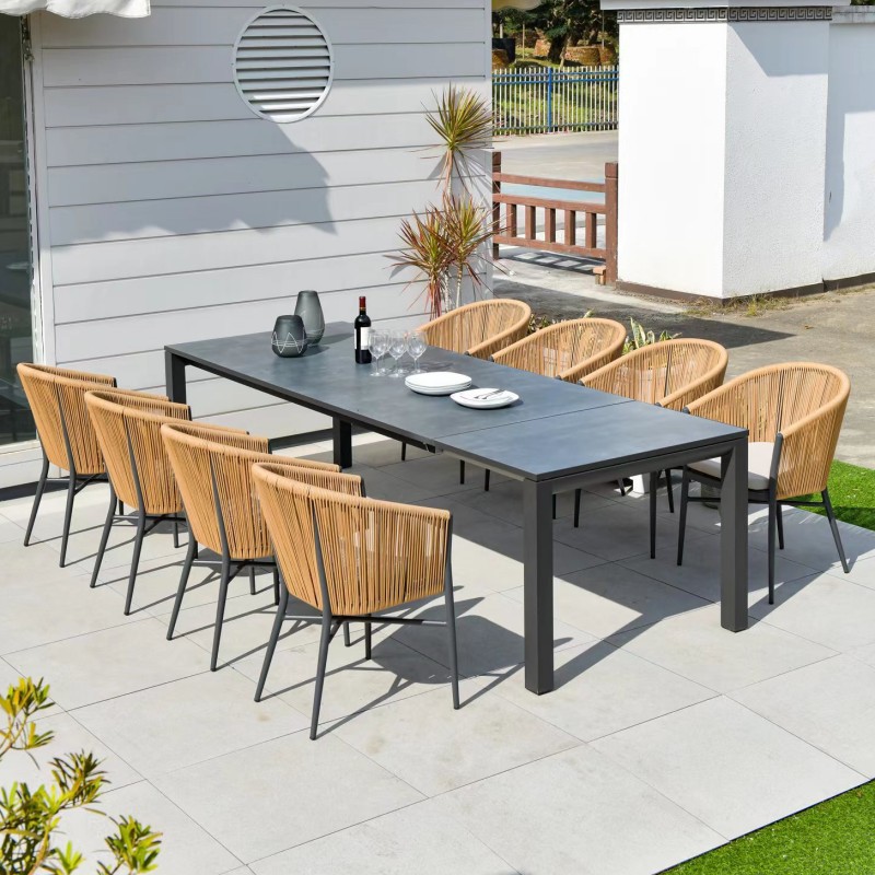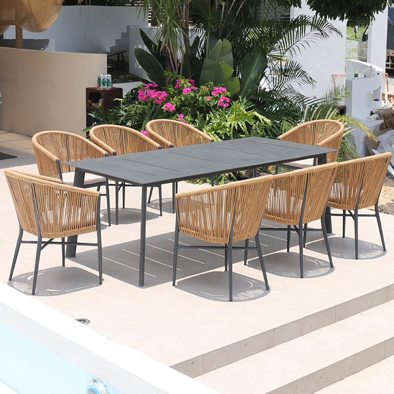 • 200x100cm 알루미늄판 롱테이블 + 의자 8개 (베이지)