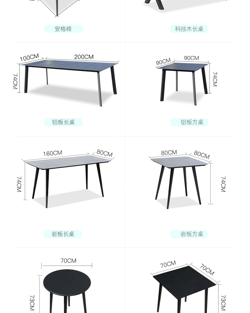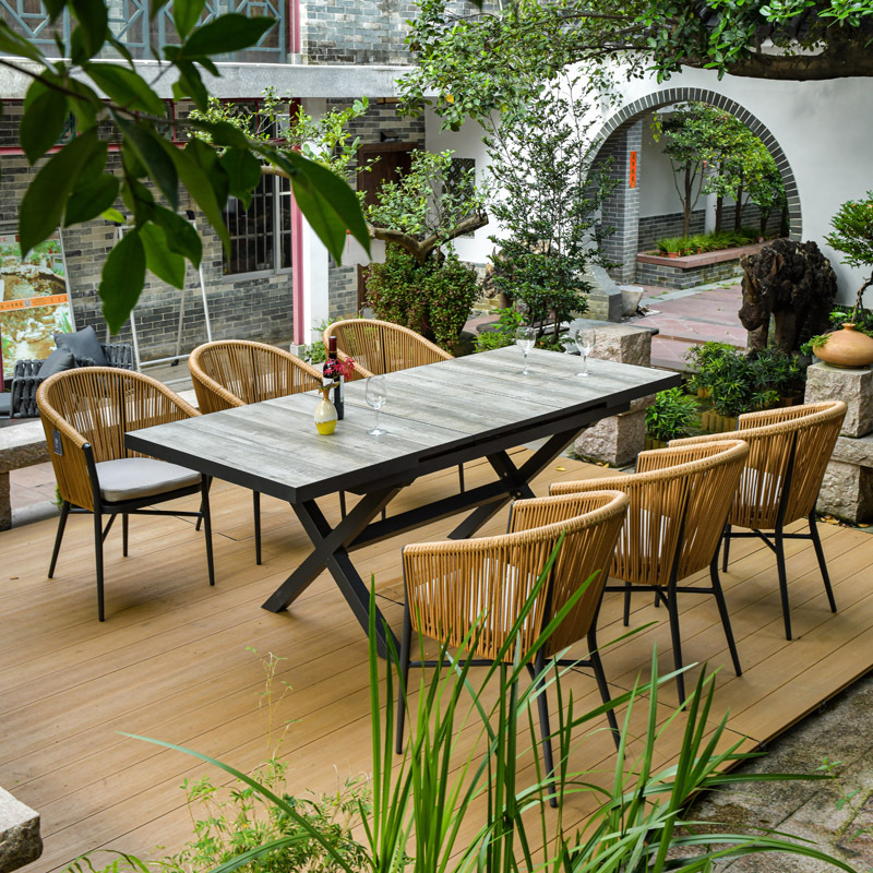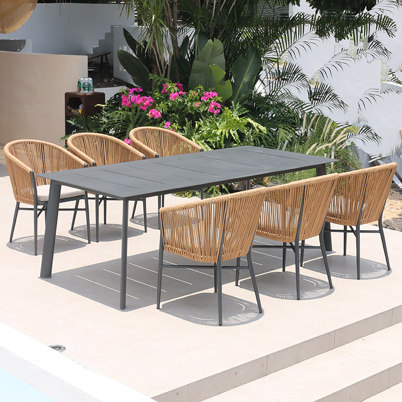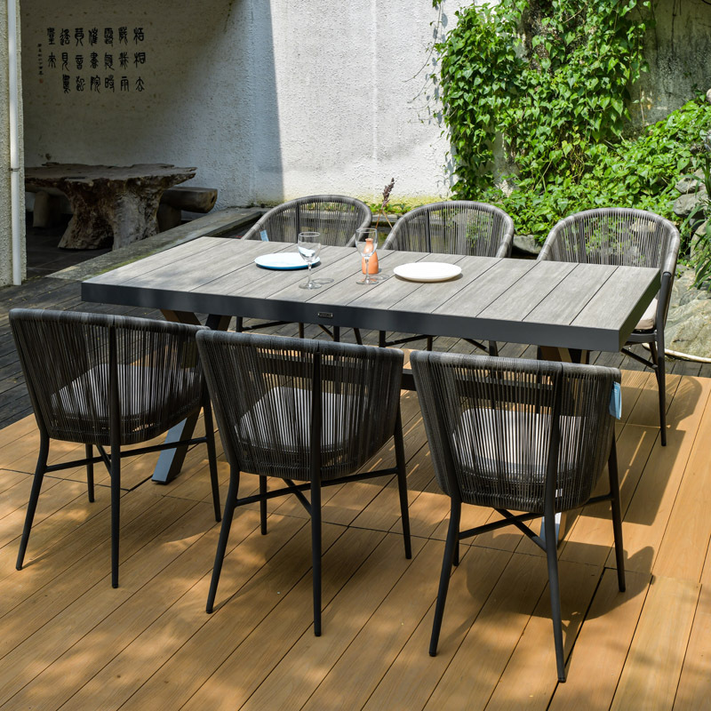 • 160x80cm 슬레이트 롱테이블 + 의자 6개 (베이지)