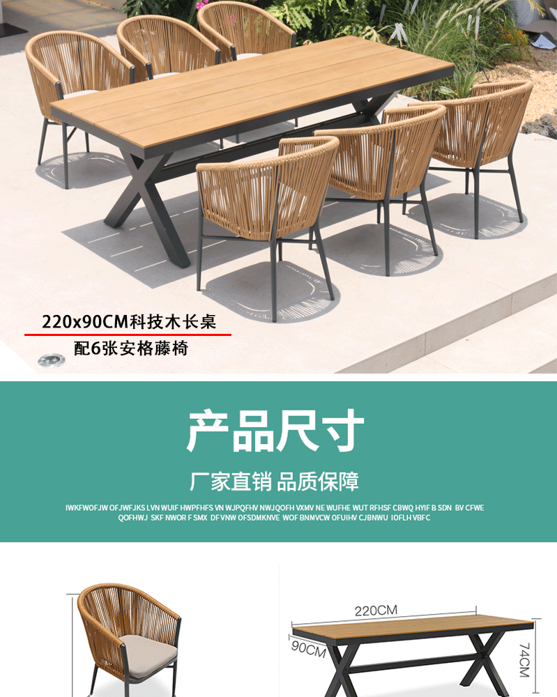 • 220x90cm 테크놀로지 원목 롱테이블 + 의자 6개 (베이지)