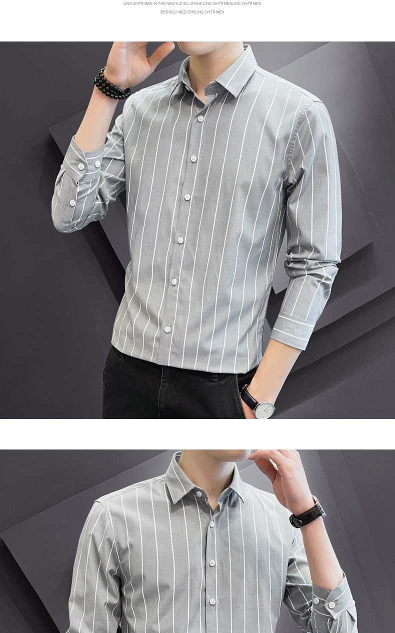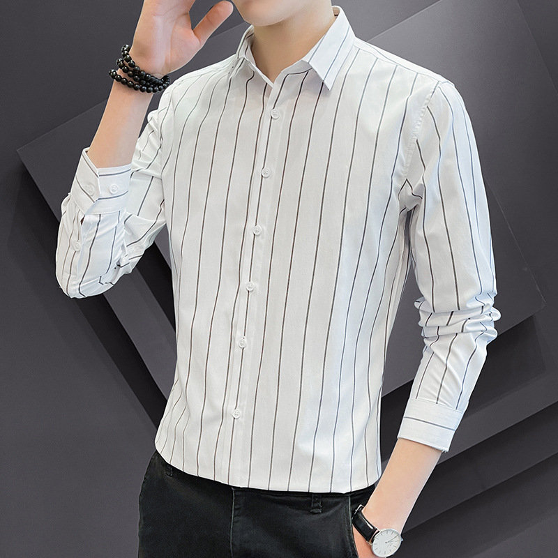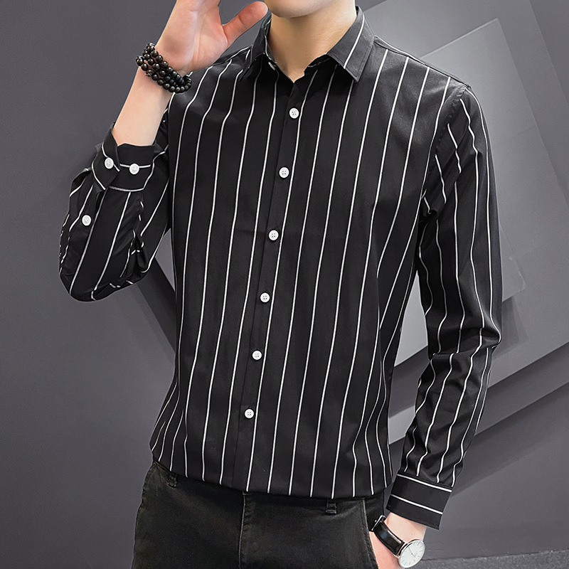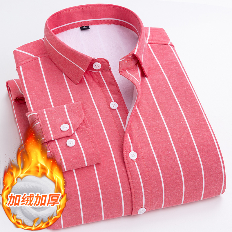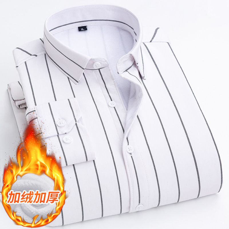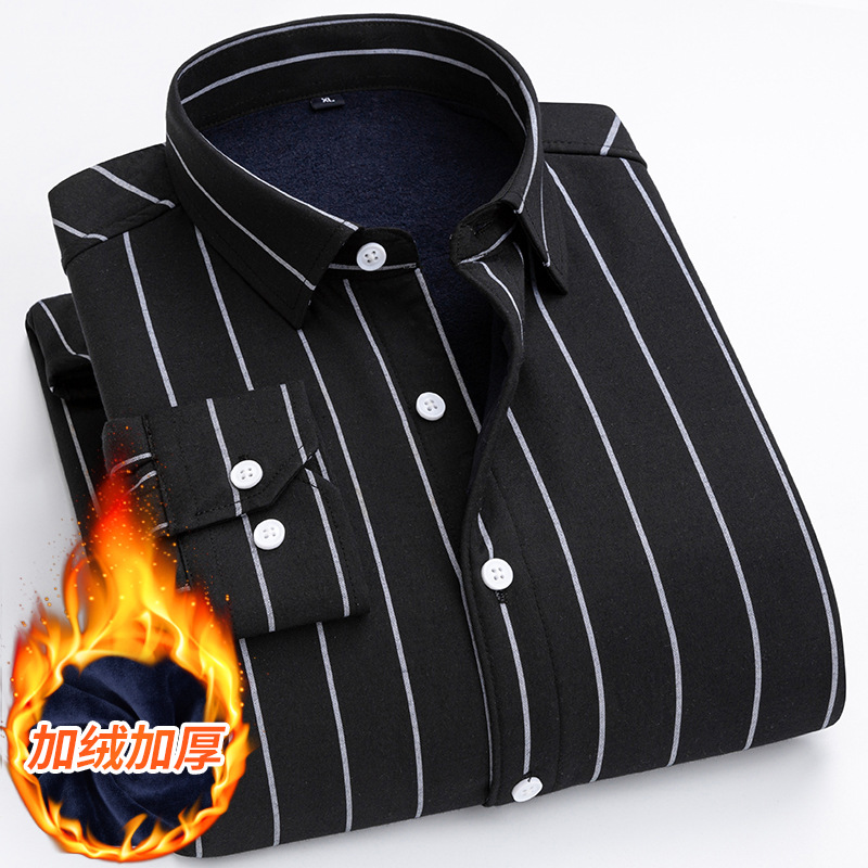 겨울 남성용 기모 셔츠 트렌디한 스트라이프 셔츠 젊은 남성용 슬림핏 비즈니스 이너웨어 두꺼운 티셔츠스토어 가기