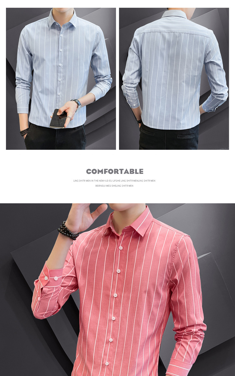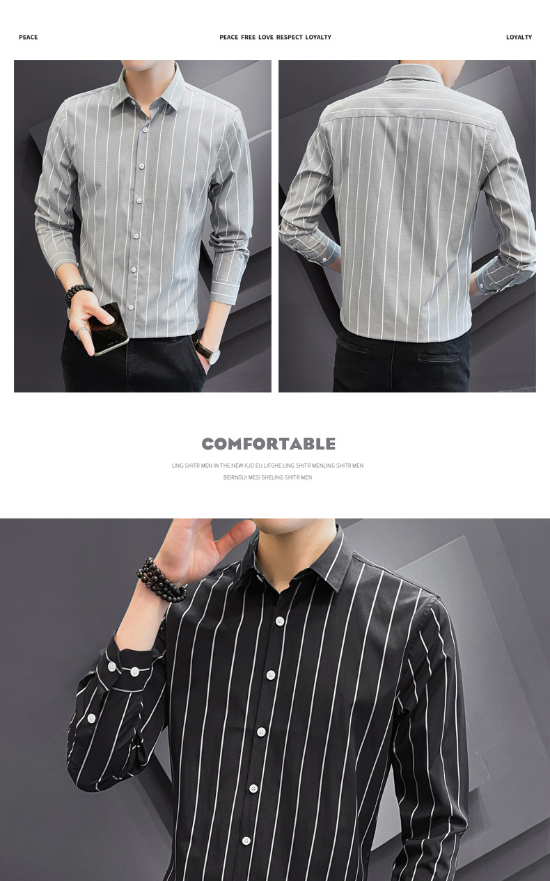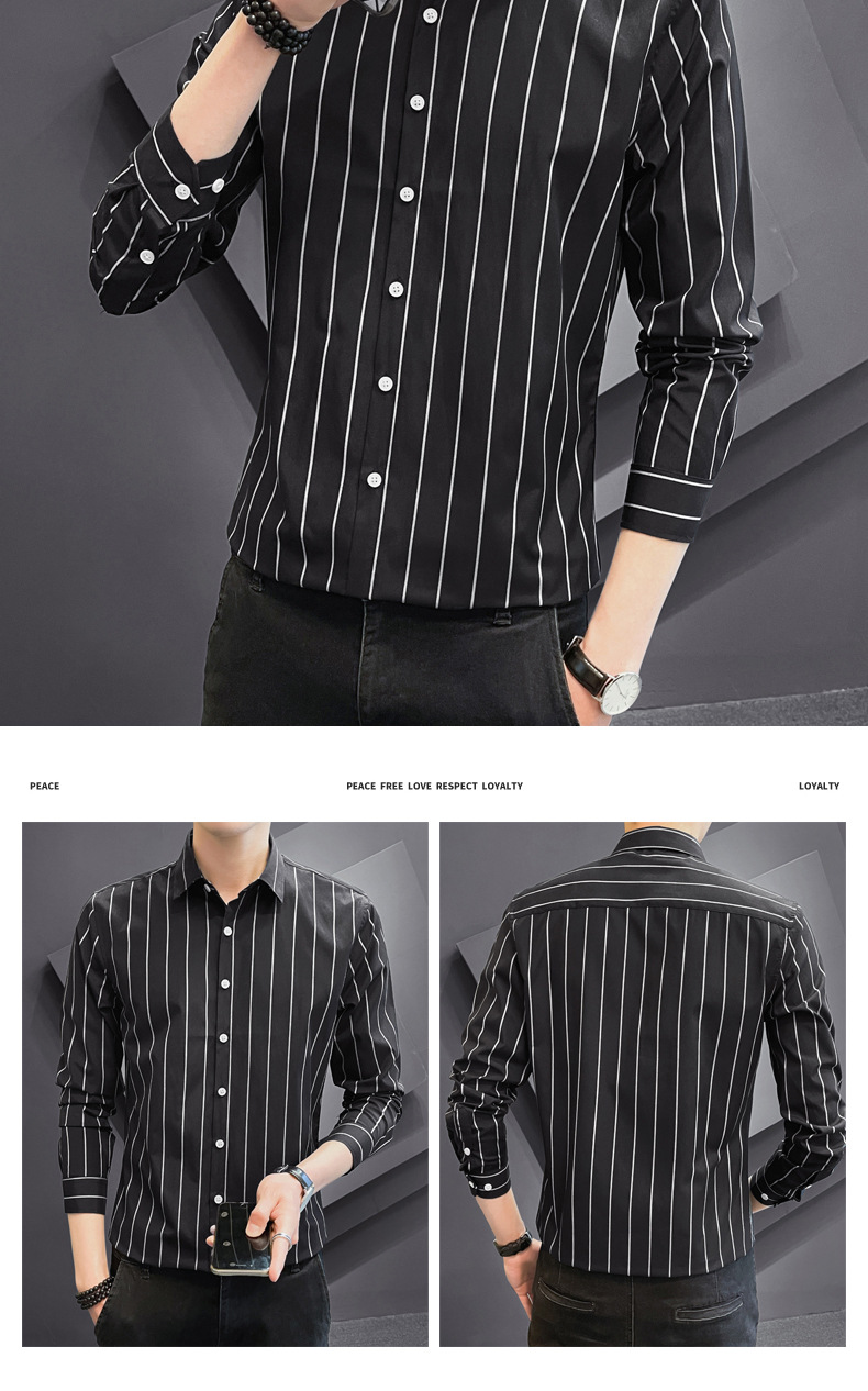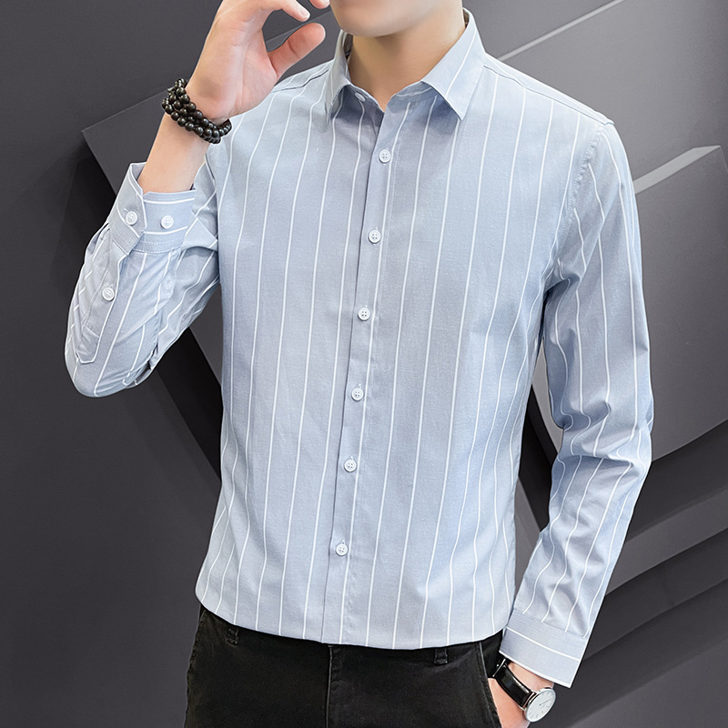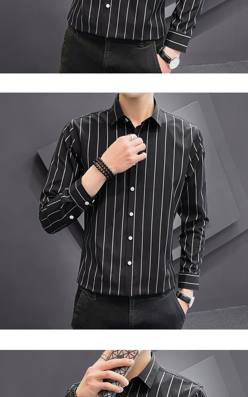겨울 남성용 기모 셔츠 트렌디한 스트라이프 셔츠 젊은 남성용 슬림핏 비즈니스 이너웨어 두꺼운 티셔츠스토어 가기