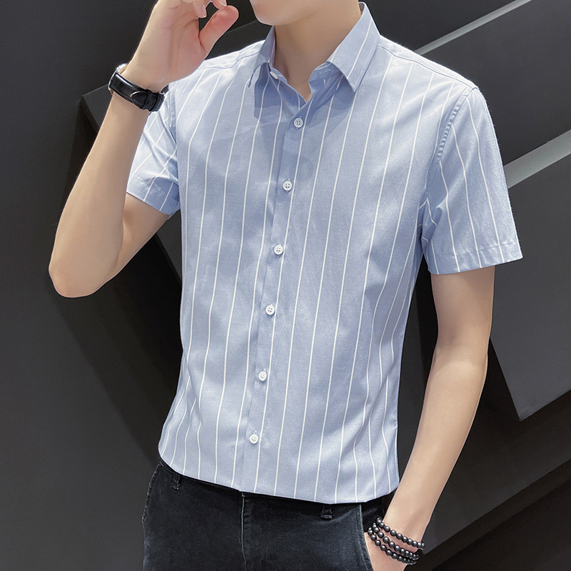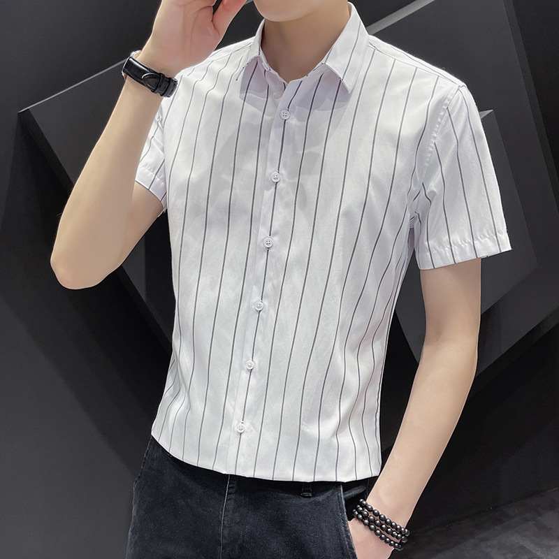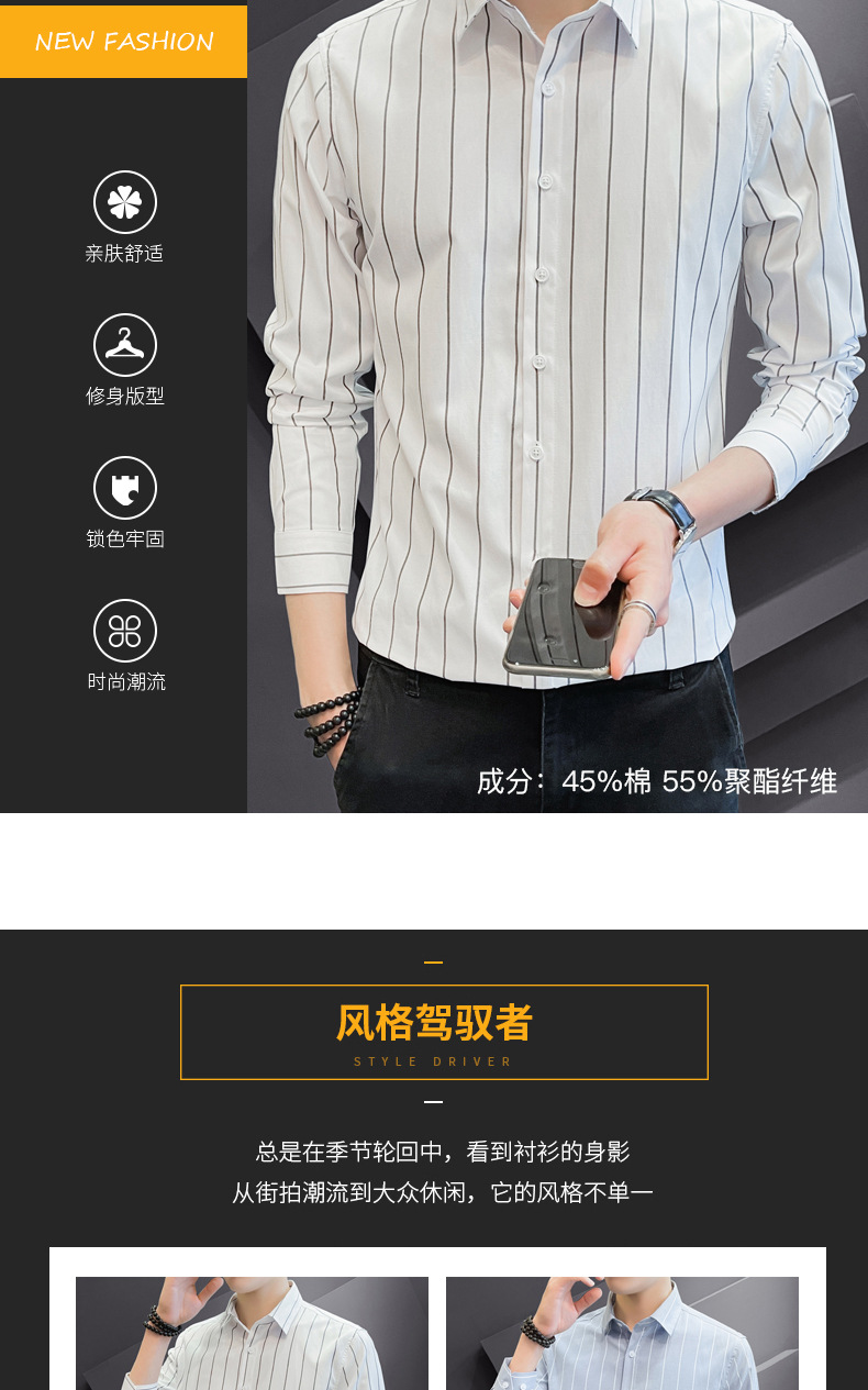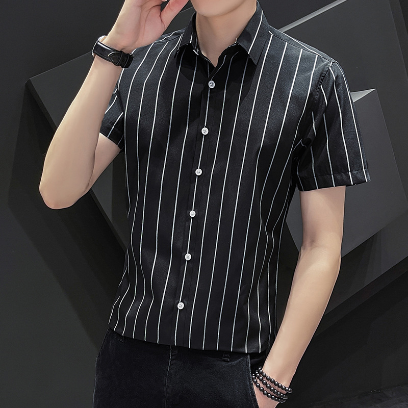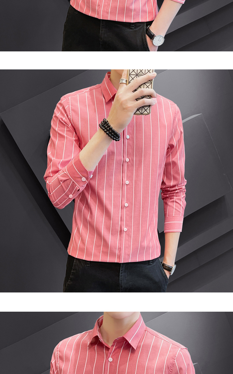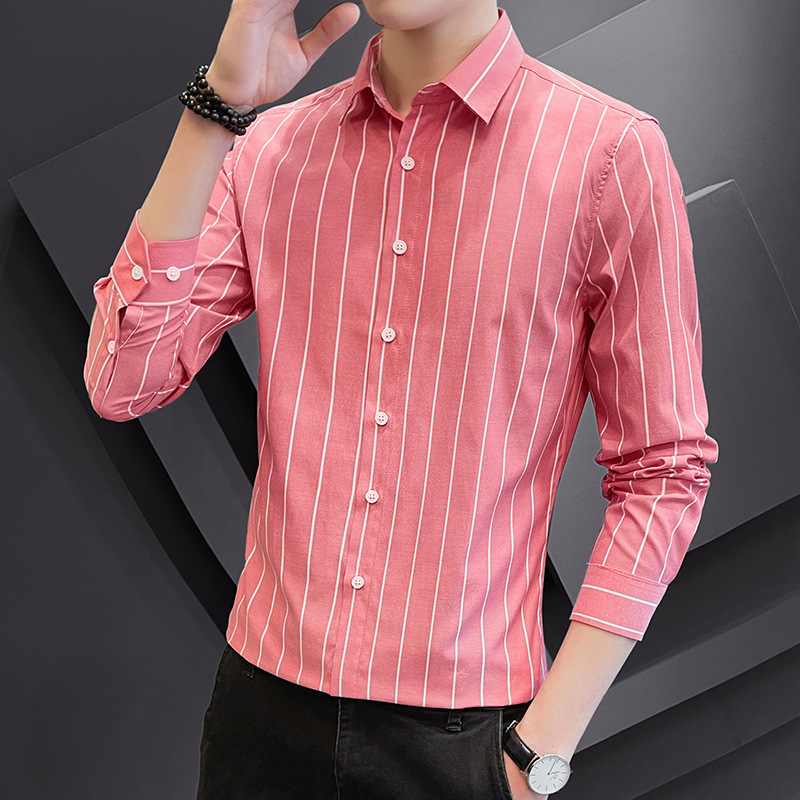 겨울 남성용 기모 셔츠 트렌디한 스트라이프 셔츠 젊은 남성용 슬림핏 비즈니스 이너웨어 두꺼운 티셔츠스토어 가기