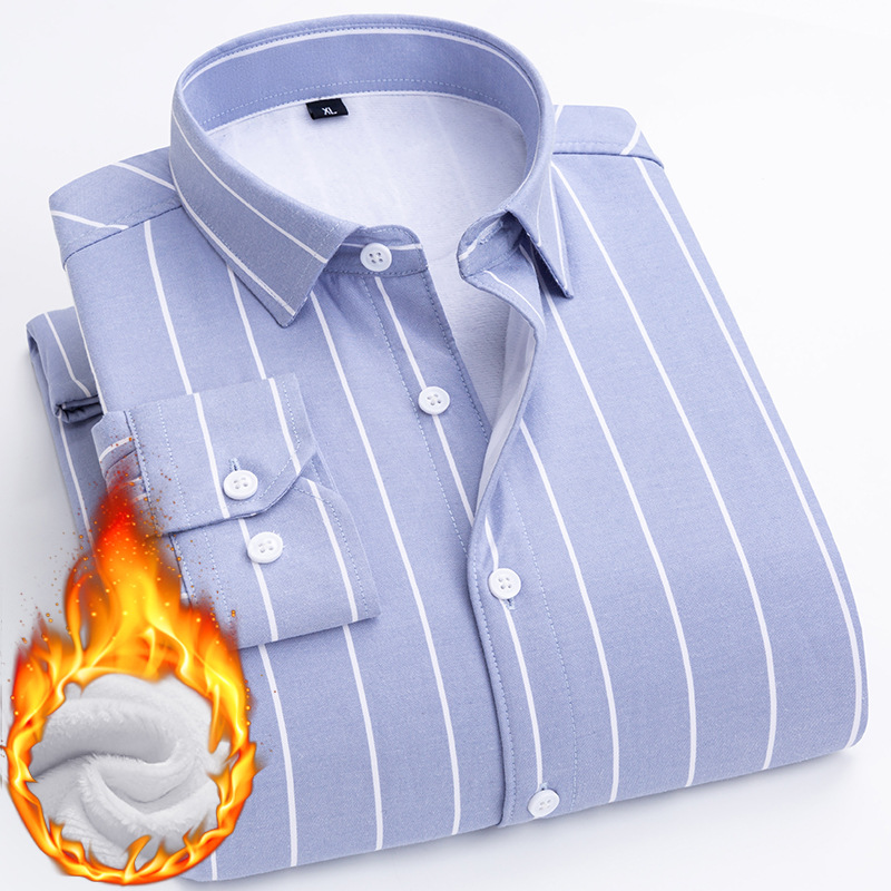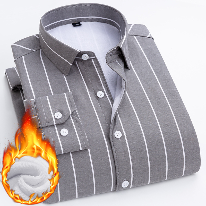 겨울 남성용 기모 셔츠 트렌디한 스트라이프 셔츠 젊은 남성용 슬림핏 비즈니스 이너웨어 두꺼운 티셔츠