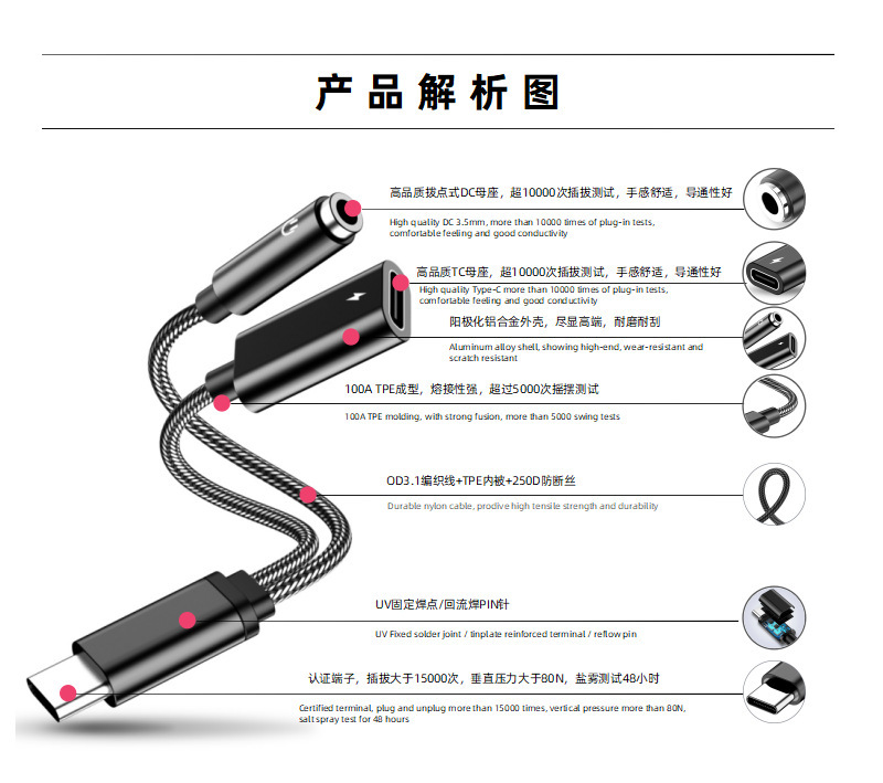 • 유형 c-3.5mm 충전 2 in 1 10W 블랙