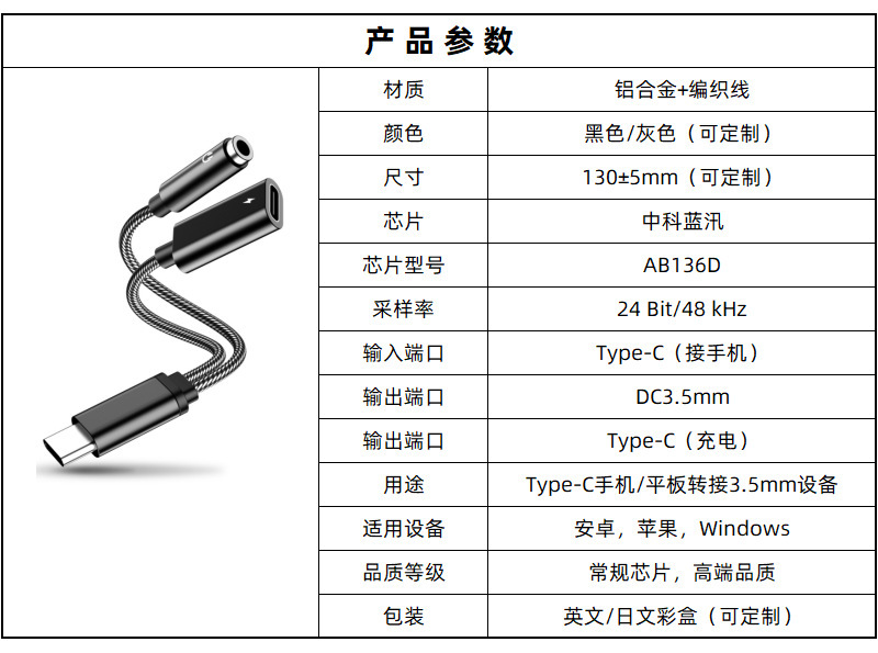 • 유형 c-3.5mm 충전 2 in 1 10W 회색