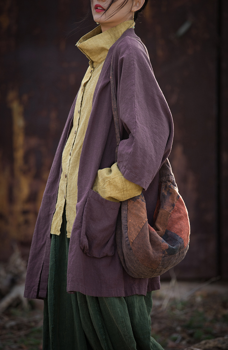25 가을 겨울 린넨 코튼 컬러풀 오리지널 로브 자켓 루즈핏 중간 길이 가디건 레이지 루프팅 스타일 여성 상의