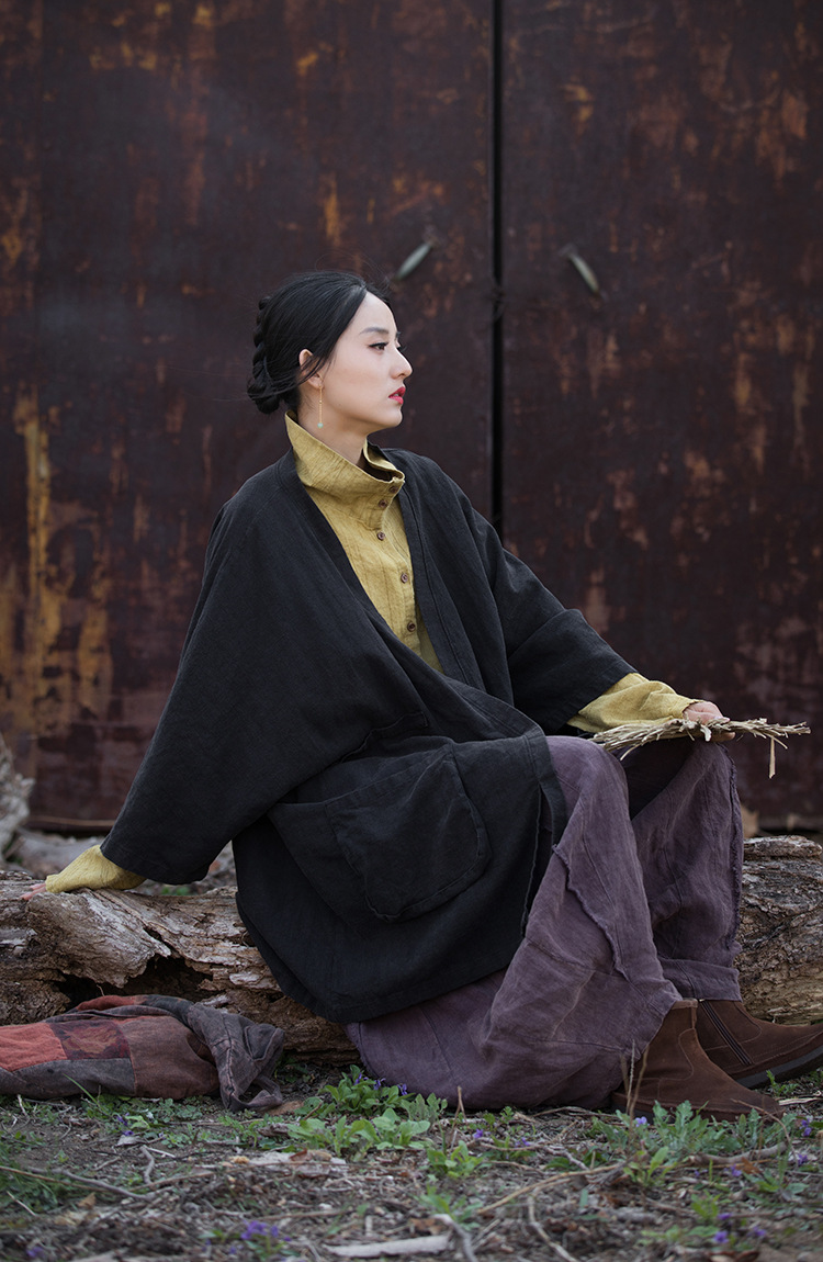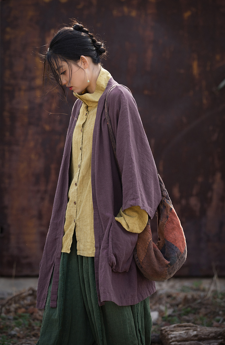 25 가을 겨울 린넨 코튼 컬러풀 오리지널 로브 자켓 루즈핏 중간 길이 가디건 레이지 루프팅 스타일 여성 상의스토어 가기