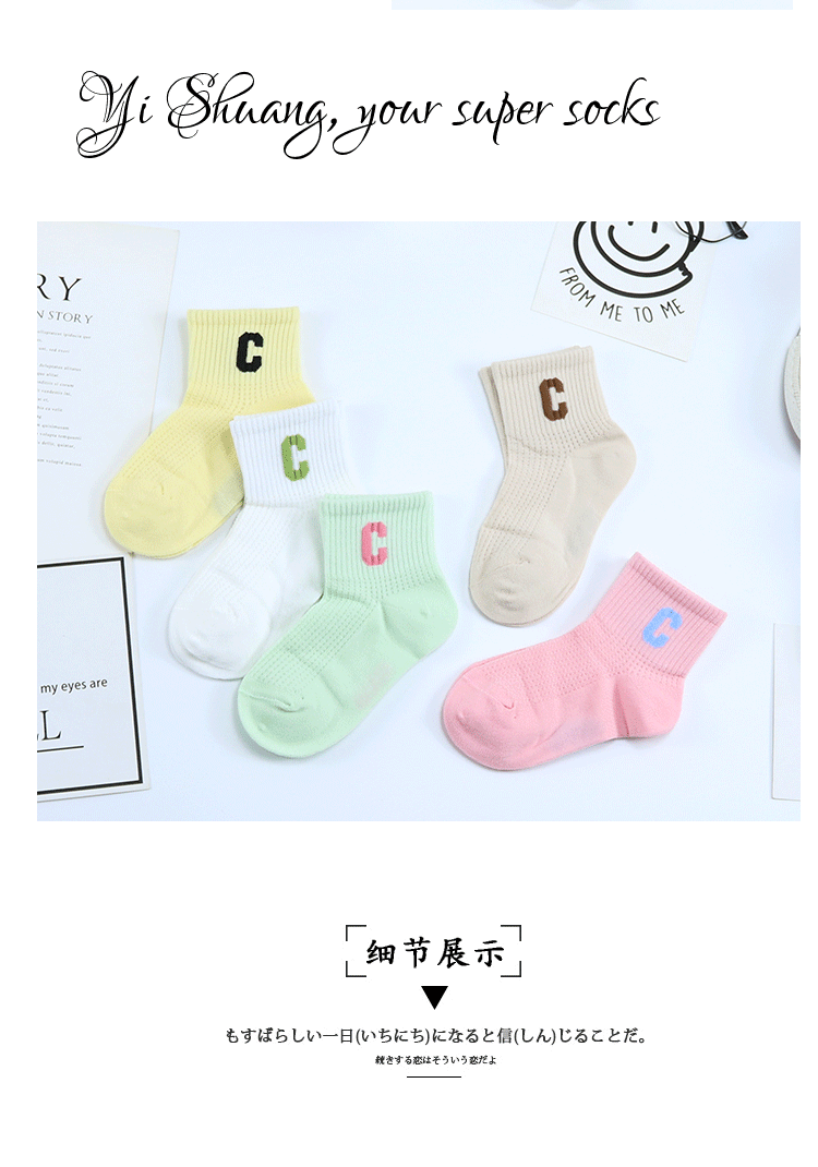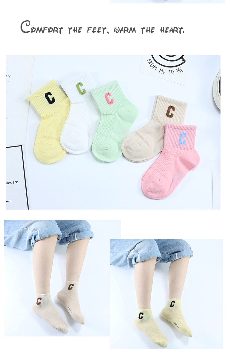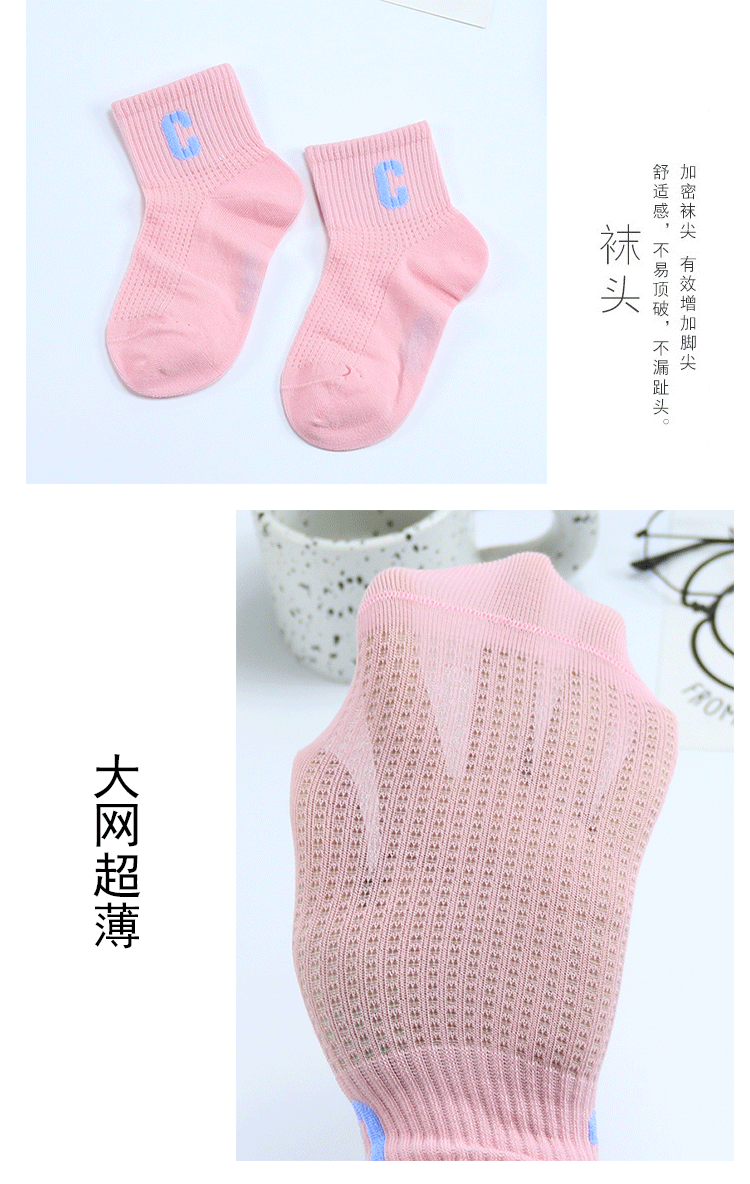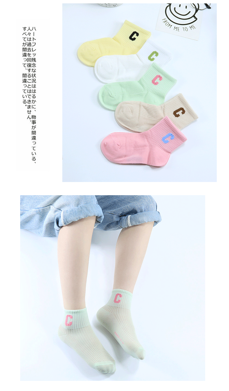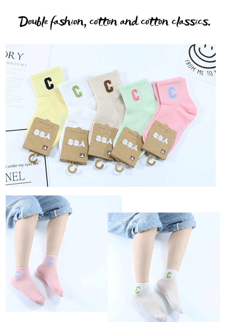 Yi 쌍 어린이 양말 여름 새로운 대형 그물 울트라 얇은 C 편지 짧은 양말 빗 코튼 걸스 유행 브랜드 스포츠 양말스토어 가기