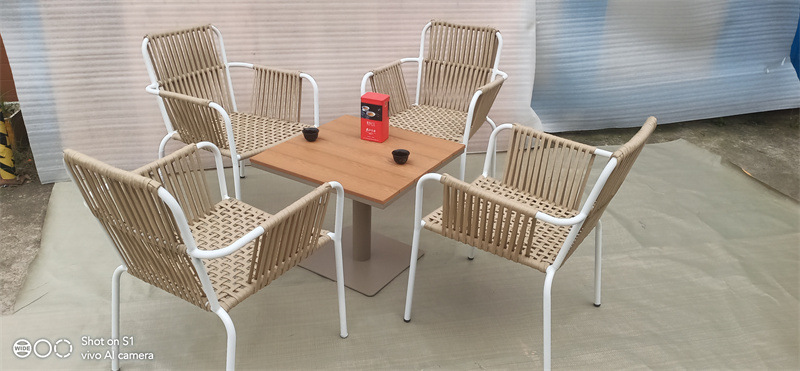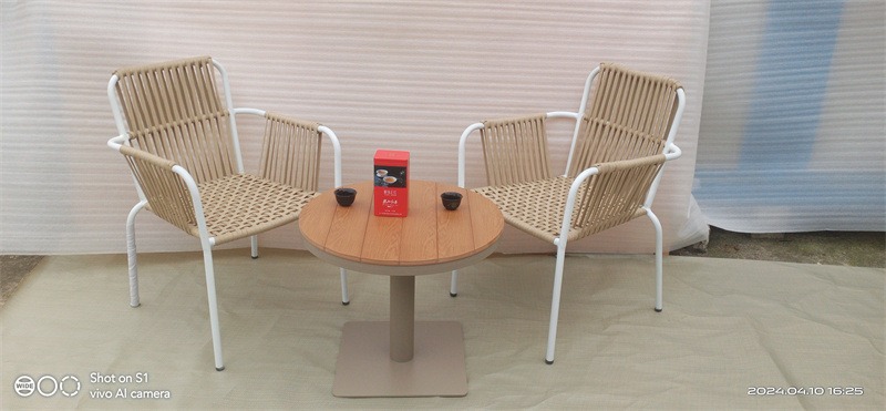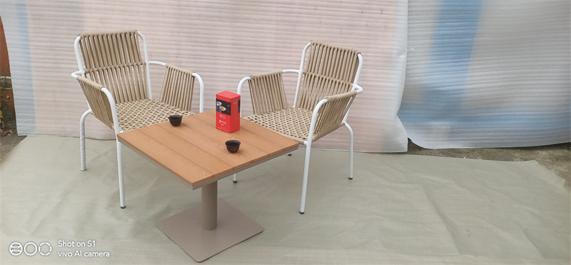 발코니 등나무 의자 3 조각 세트 야외 레저 플라스틱 나무 테이블 코트야드 사이드 테이블 카페 야외 레저 바베큐 식사 테이블 및 의자