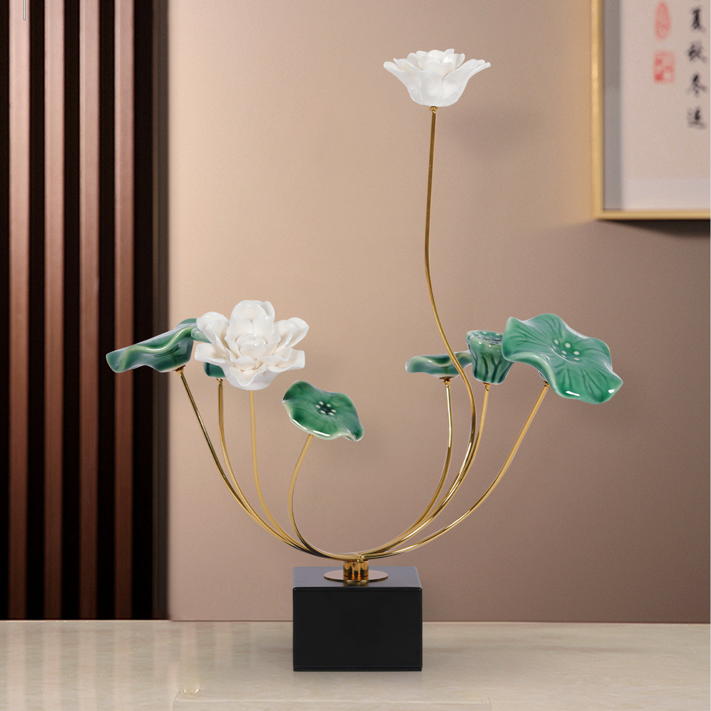 새로운 중국 스타일 가벼운 럭셔리 로터스 따뜻한 방 보석 장식 새로운 레지던스 거실 모델 룸 와인 캐비닛 하이 엔드 소프트 로터스