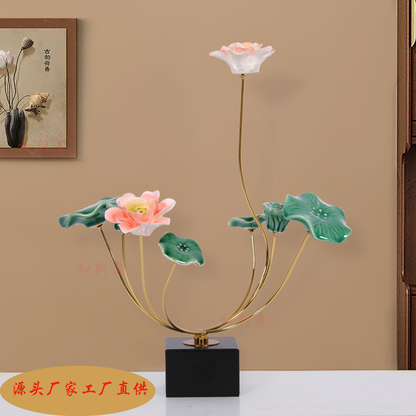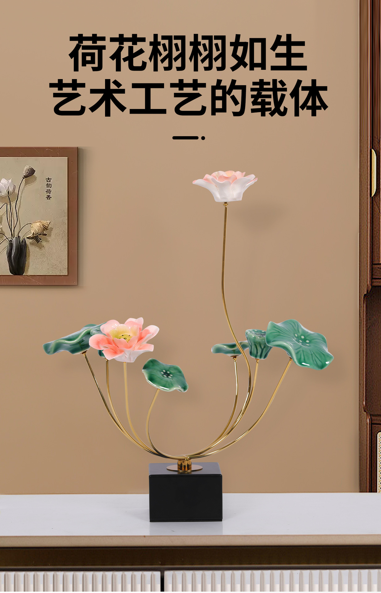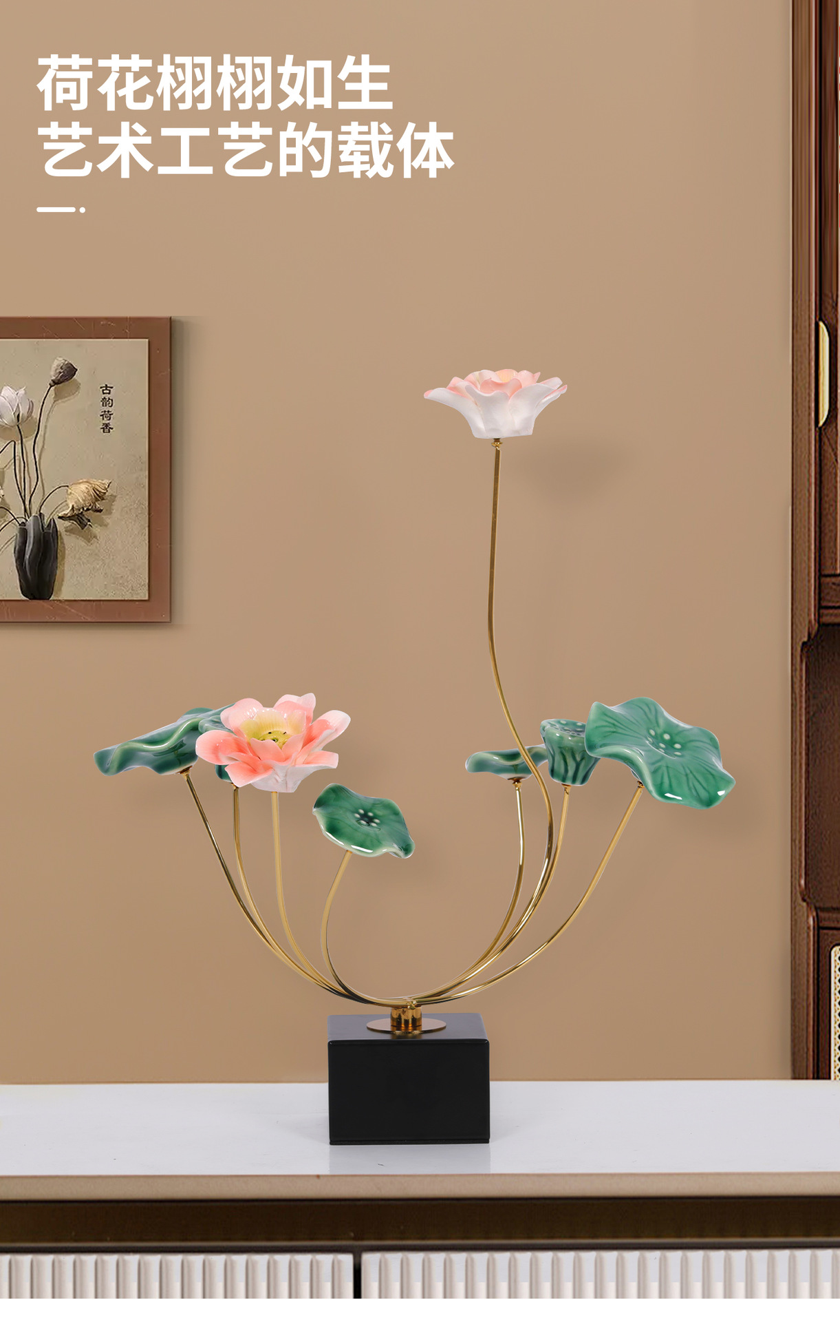 새로운 중국 스타일 가벼운 럭셔리 로터스 따뜻한 방 보석 장식 새로운 레지던스 거실 모델 룸 와인 캐비닛 하이 엔드 소프트 로터스스토어 가기