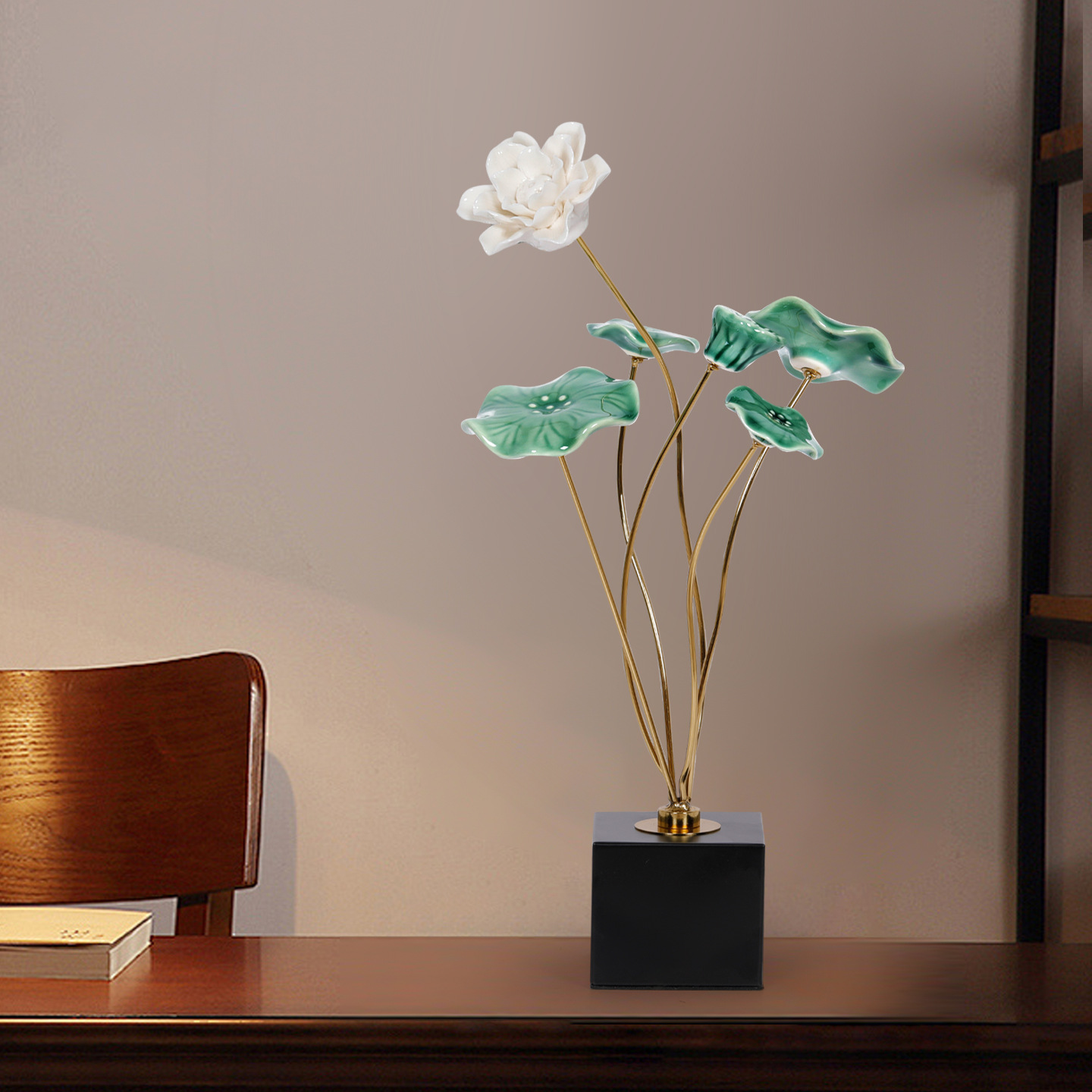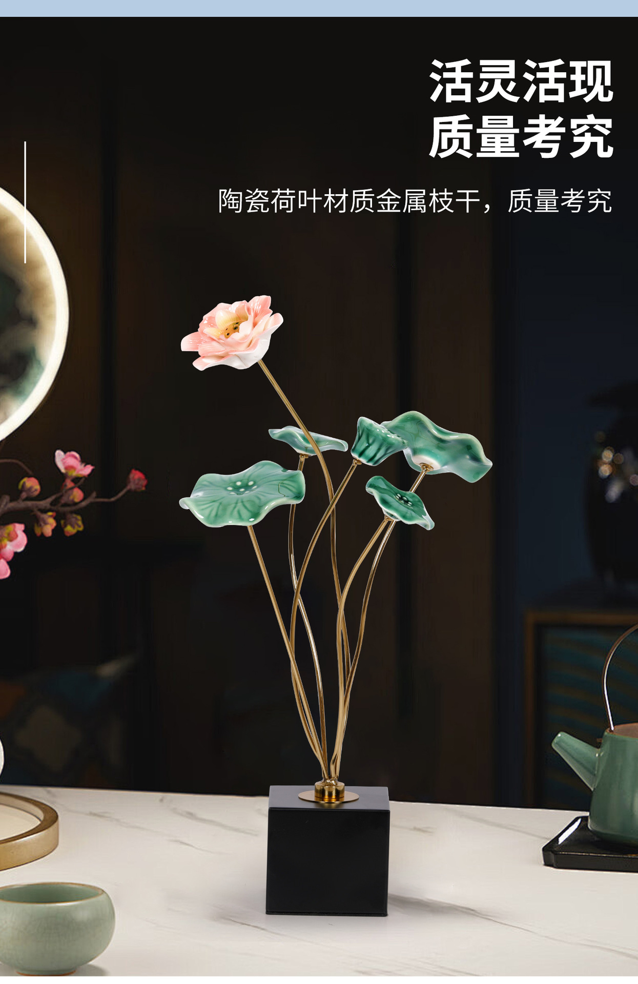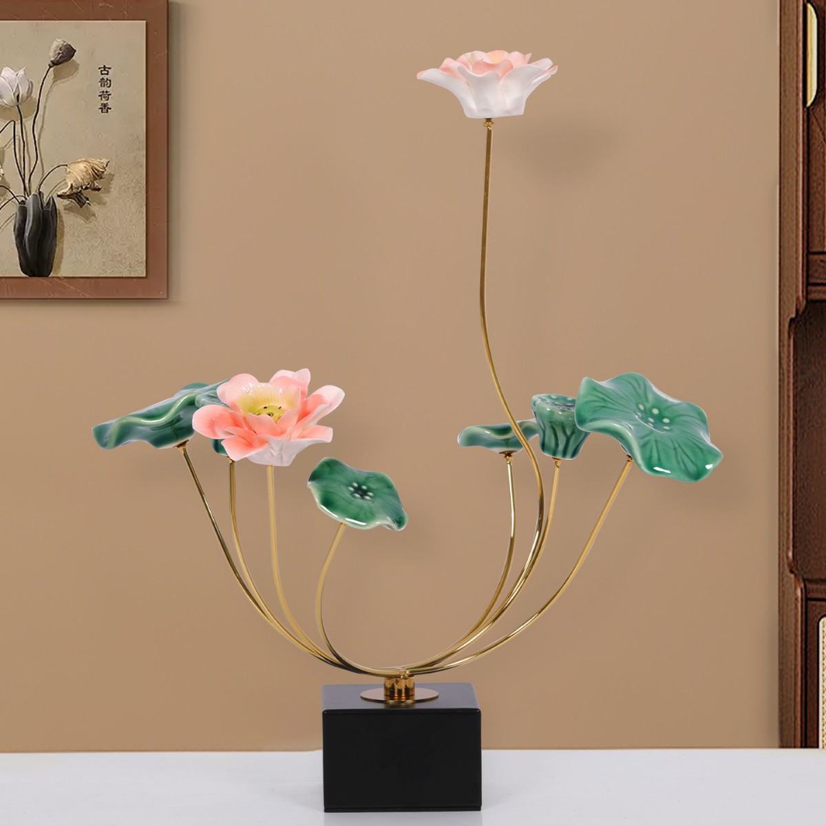 새로운 중국 스타일 가벼운 럭셔리 로터스 따뜻한 방 보석 장식 새로운 레지던스 거실 모델 룸 와인 캐비닛 하이 엔드 소프트 로터스스토어 가기
