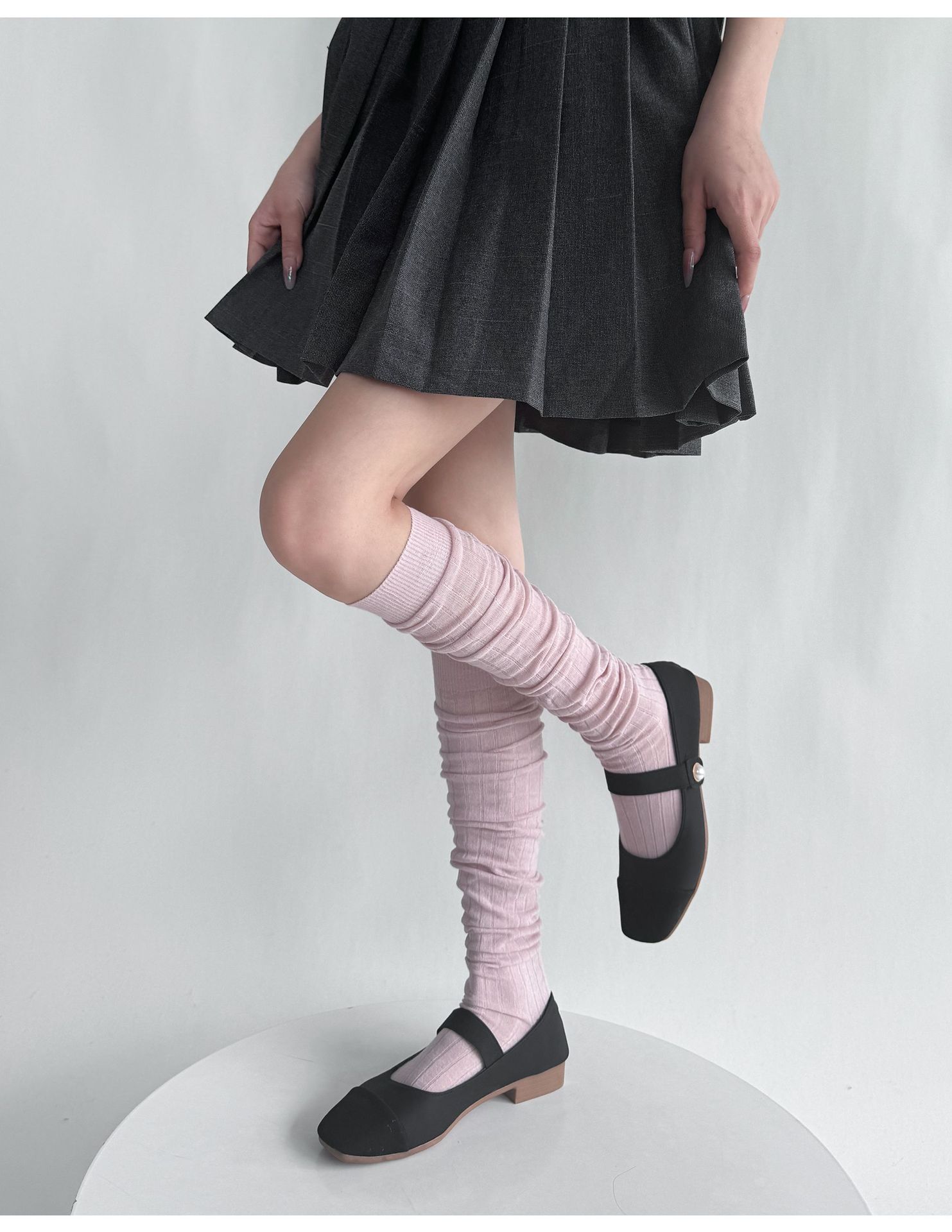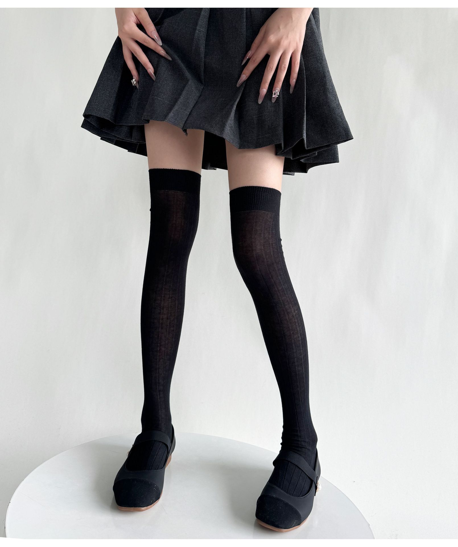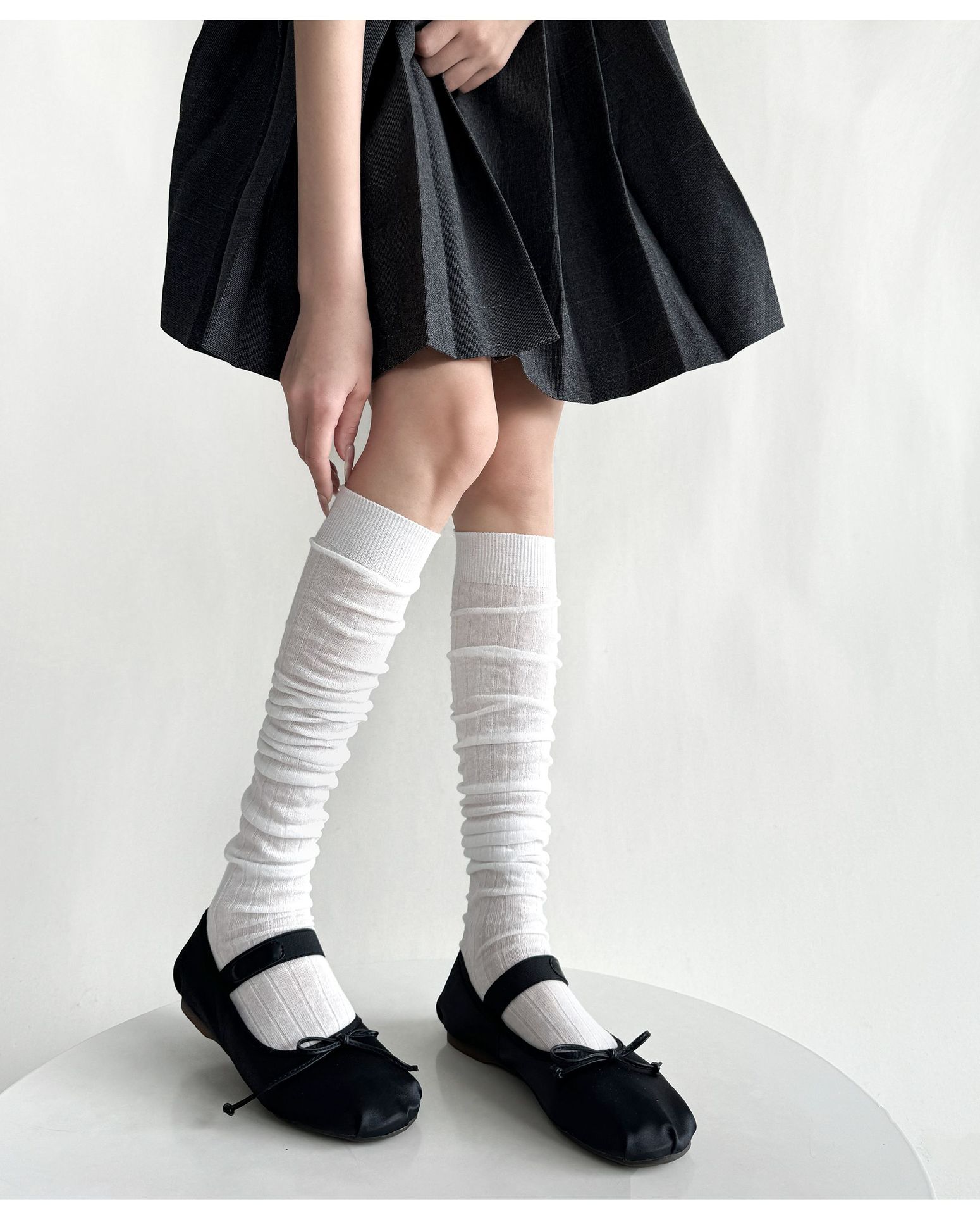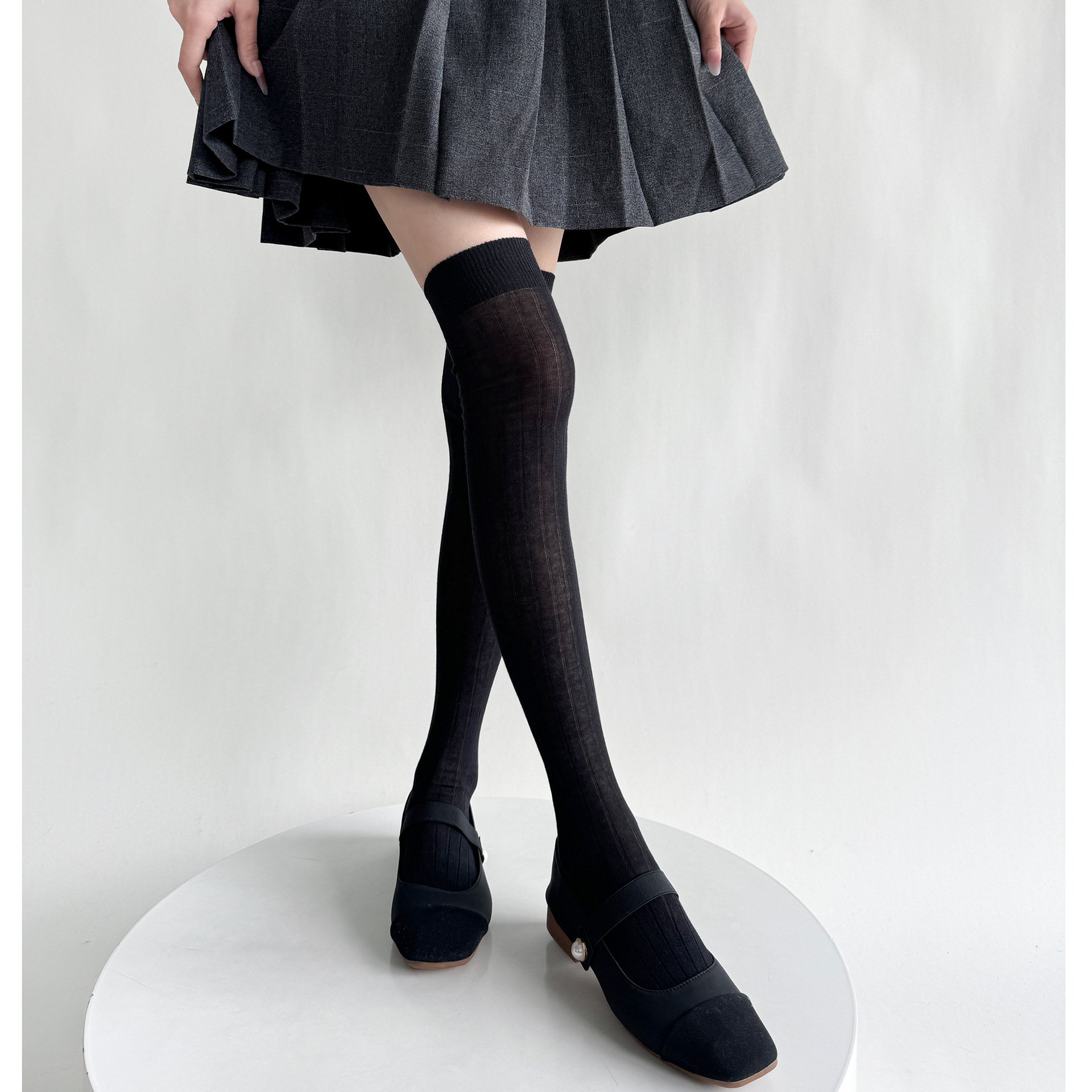 봄과 여름 얇은 면 마이크로 투명 수직 무릎 양말 여성 여름 한국식 슬리밍 높은 양말 단색 간단한 송아지 양말